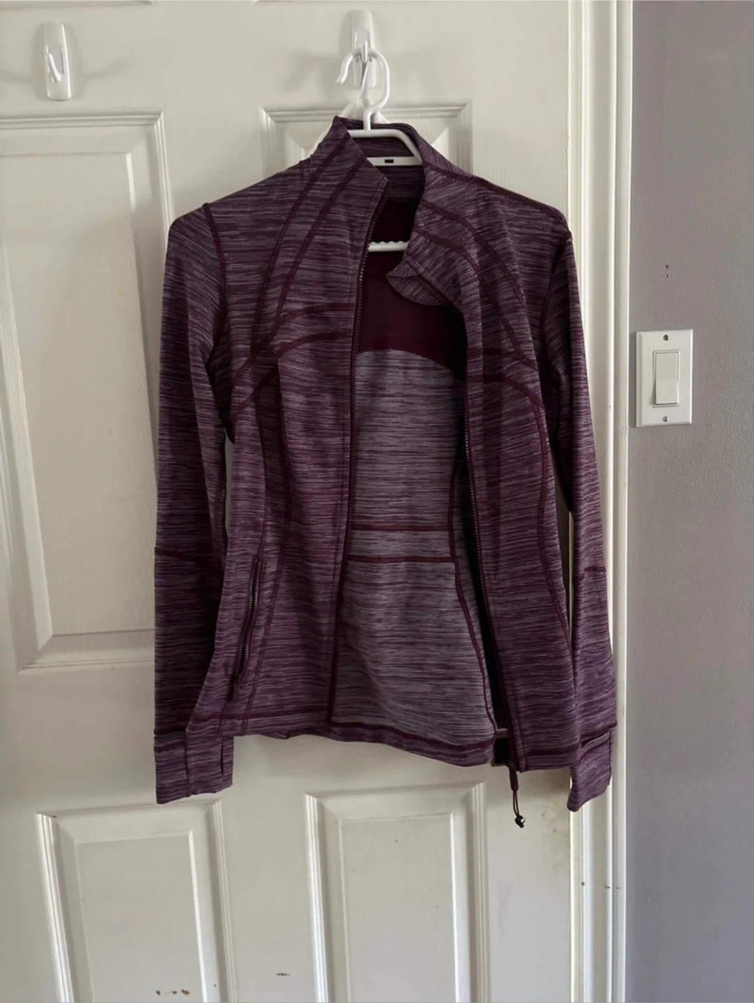 25Selling a Lululemon Define Jacket in a lovely purple colour! It's a size 6 and in great condition. Perfect for workouts or just running errands around town!