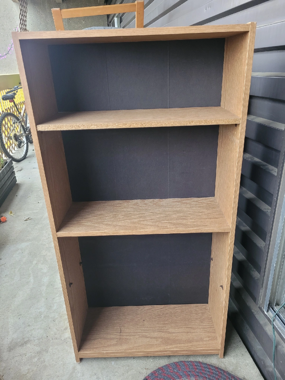 Simple wooden bookcase, made from MDF/Press board. 10" deep x 23" across x 48" tall.