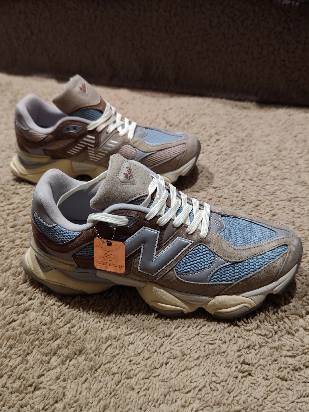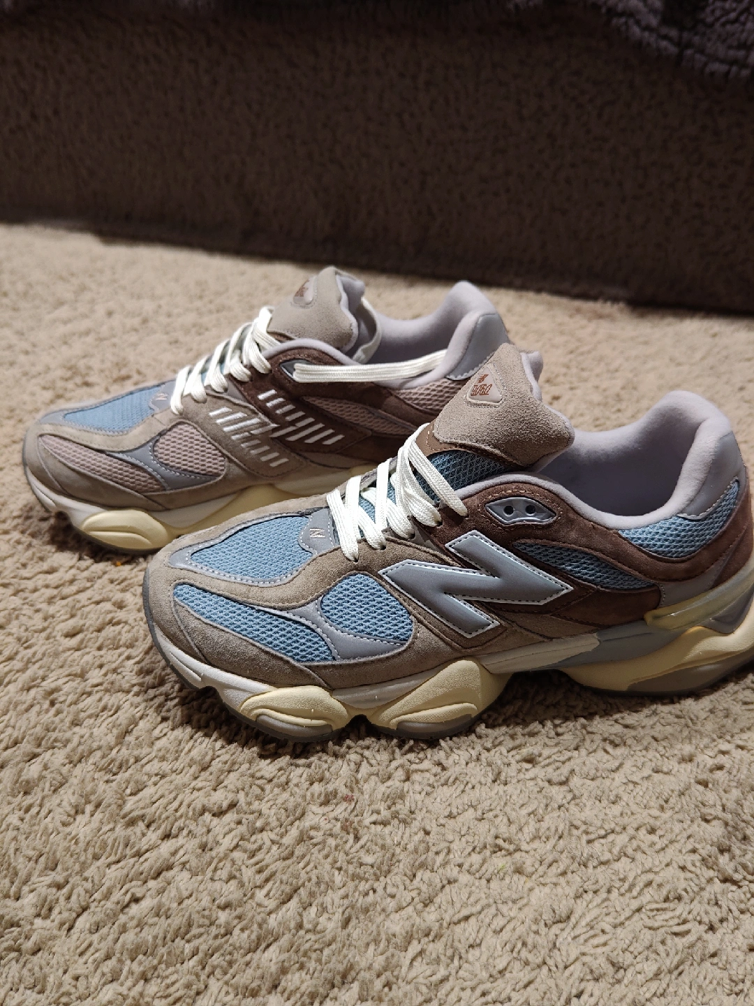 Selling a pair of New Balance 9060 sneakers in a stylish blue and brown colorway. These shoes are new and ready for a new home! Perfect for adding a touch of style to your everyday look