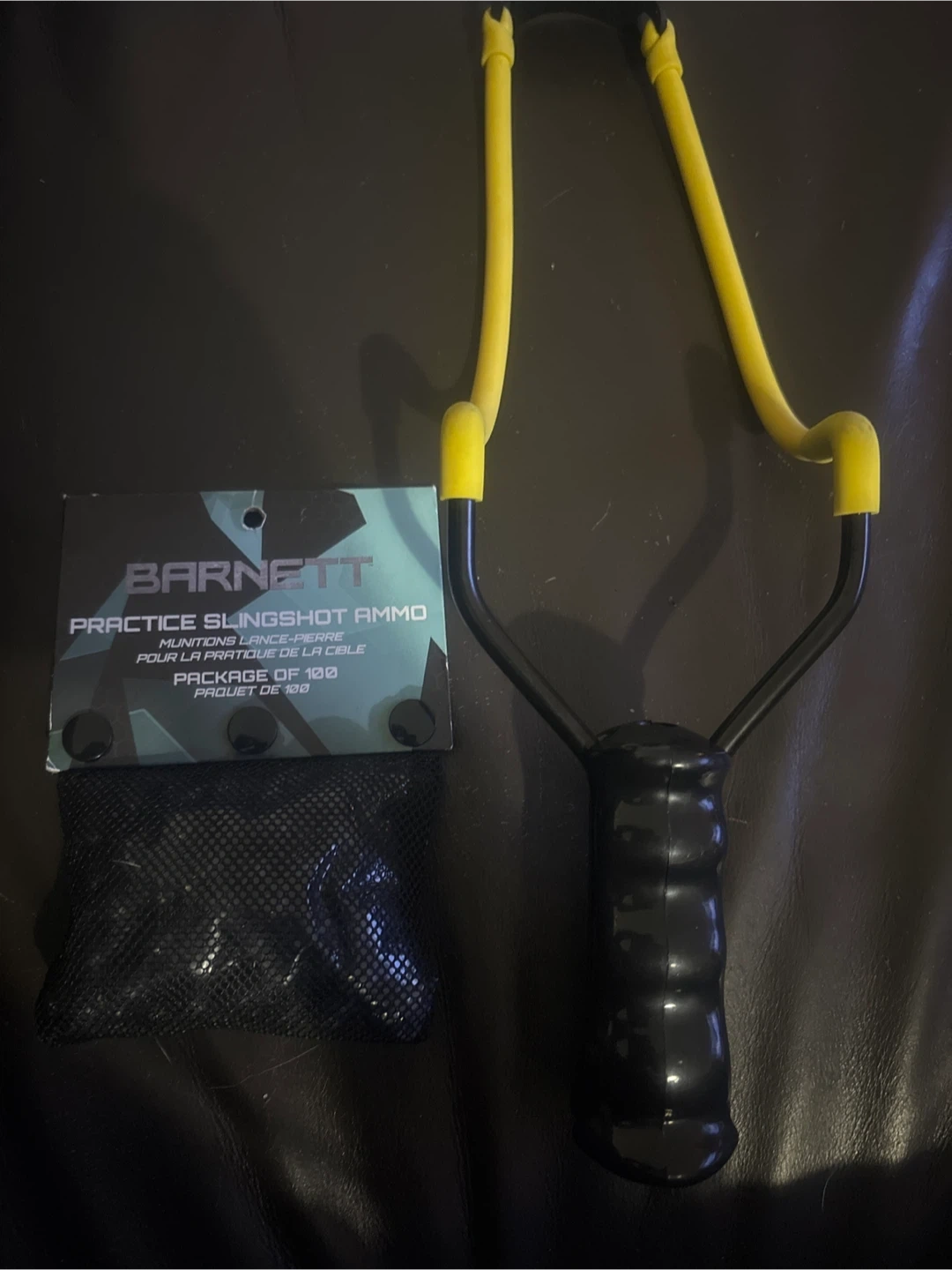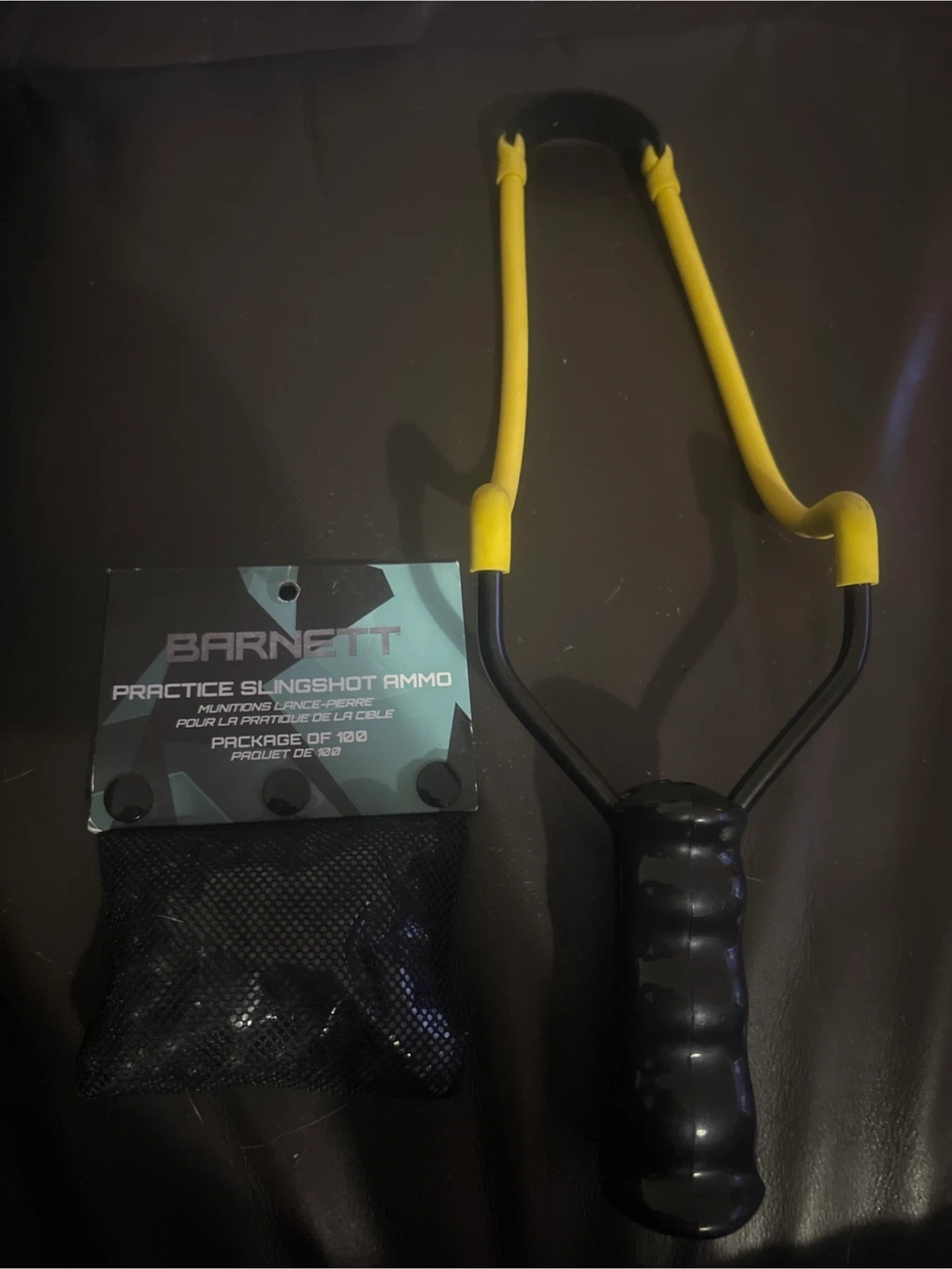 Selling a Barnett practice slingshot with ammo. The ammo comes in a package of 100. Great for some outdoor fun!