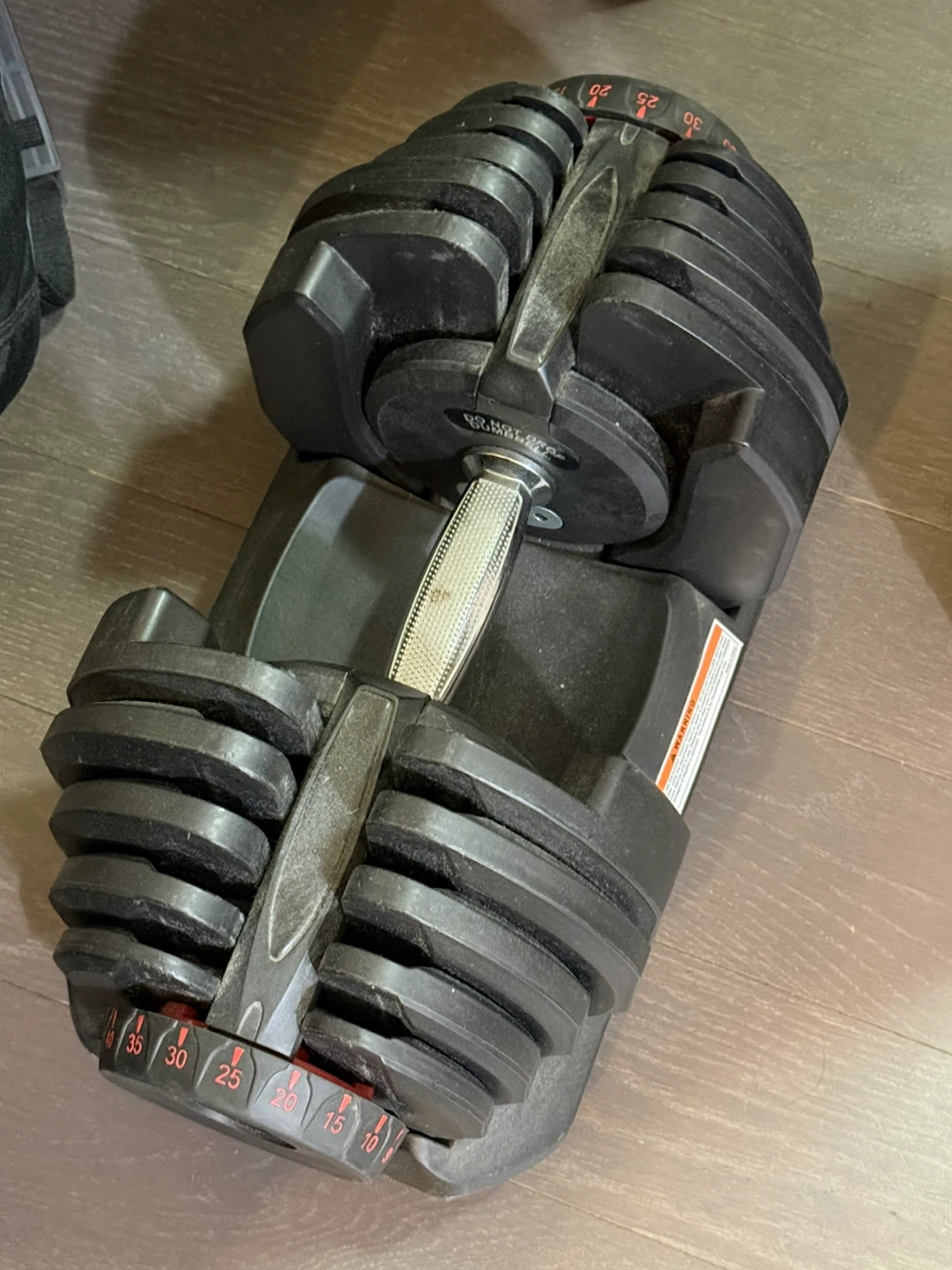 Selling a pair of adjustable dumbbells. They're in great shape and ready for your home gym! You can easily adjust the weight to suit your workout needs Bought for $600