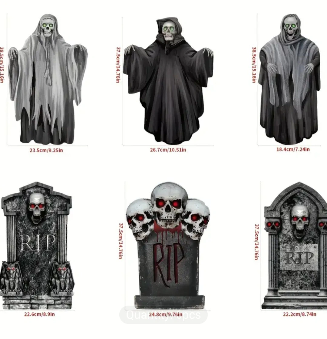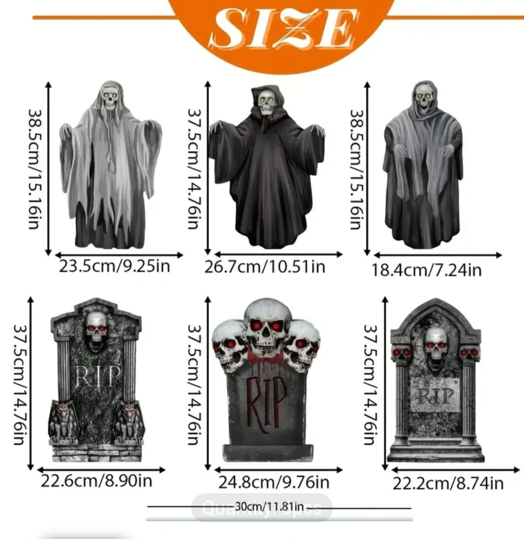 Get ready for Halloween with these spooky yard decorations! This set includes 6 pieces: Grim Reapers and Tombstones. Perfect for adding a scary touch to your outdoor decor
