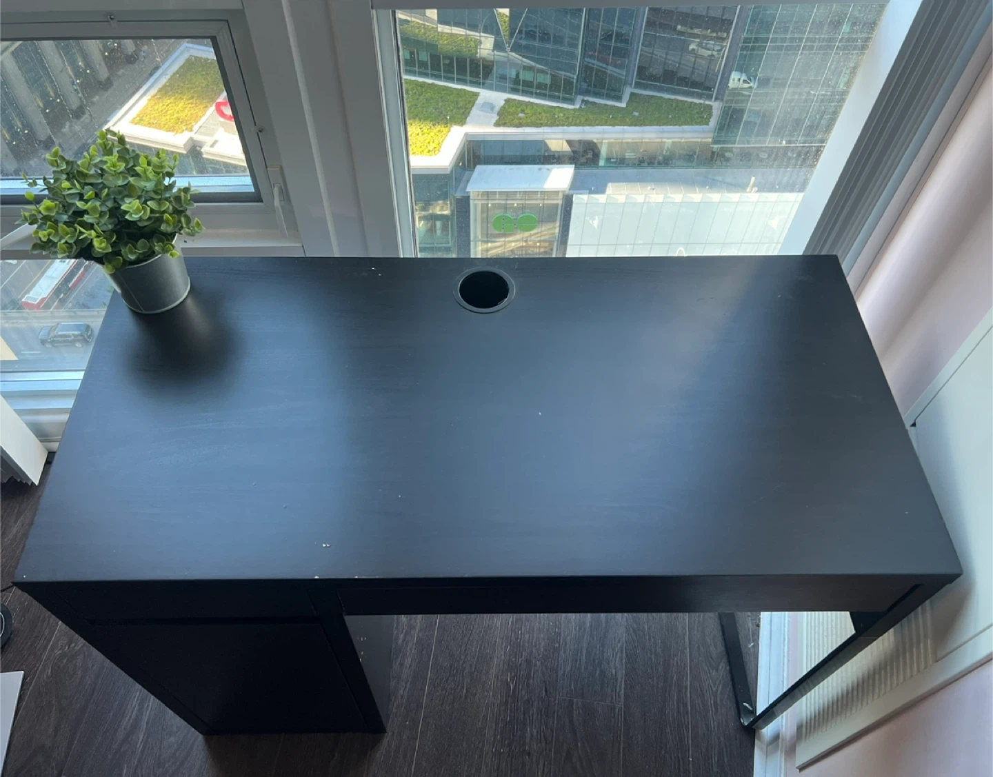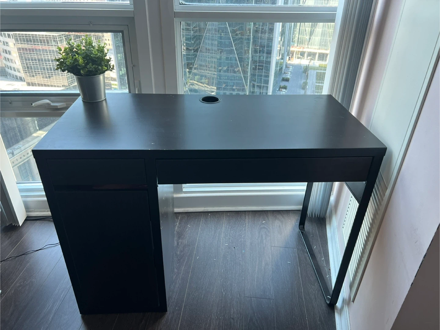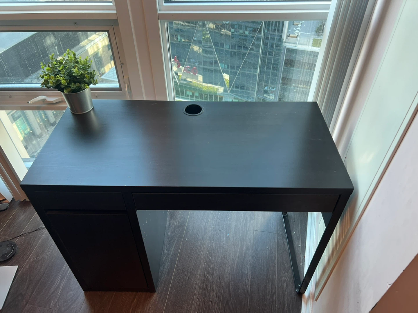 Selling an IKEA MICKE desk in black-brown. It's in great shape with just a few scratches (reason I’m selling it for cheap). The dimensions are in the last photo.