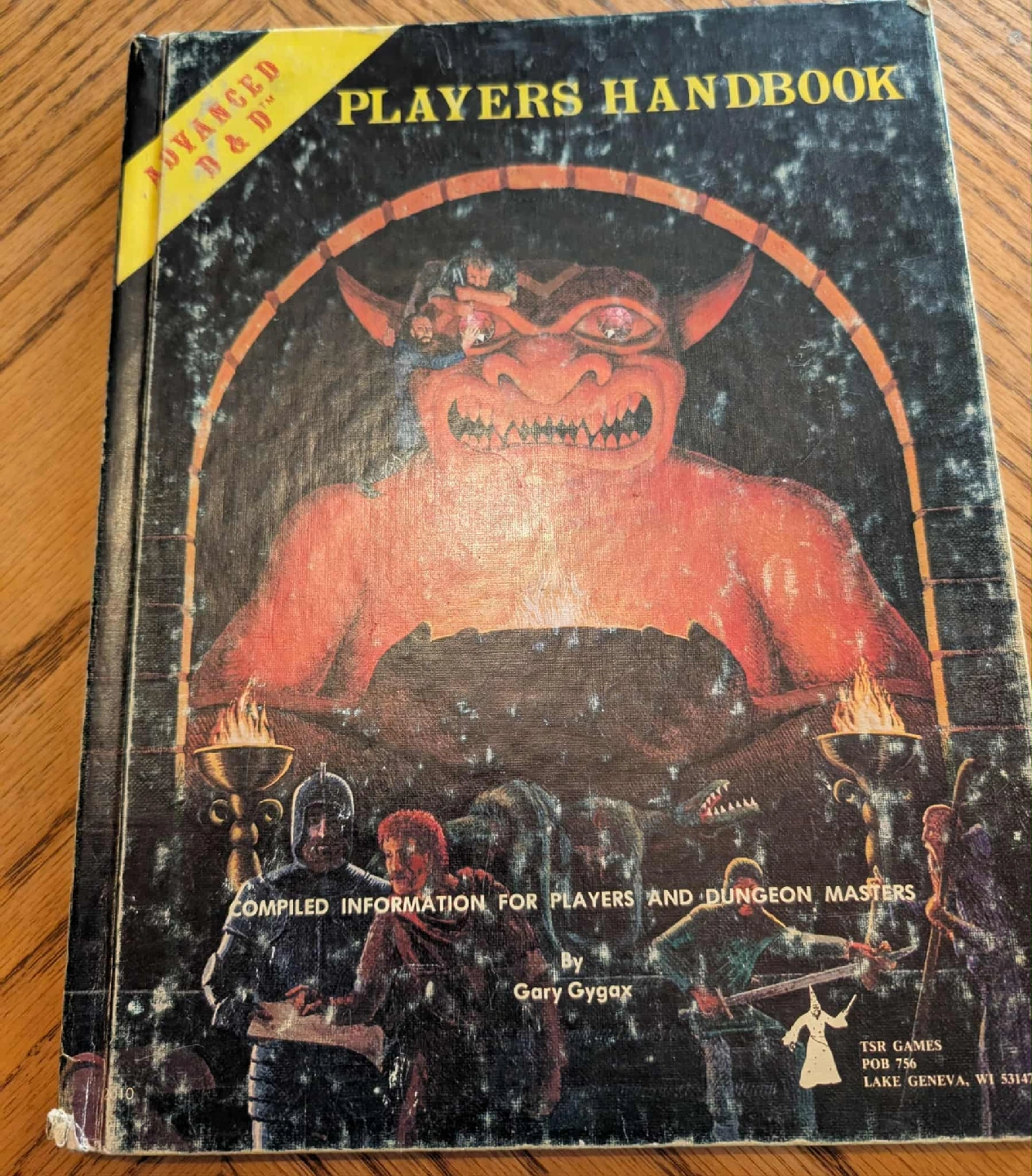 Selling a copy of the Advanced D&D Players Handbook by Gary Gygax. It's a compiled information guide for players and dungeon masters. The book shows some wear and tear, but it's still a great resource for any D&D enthusiast. 1st print edition. 1978