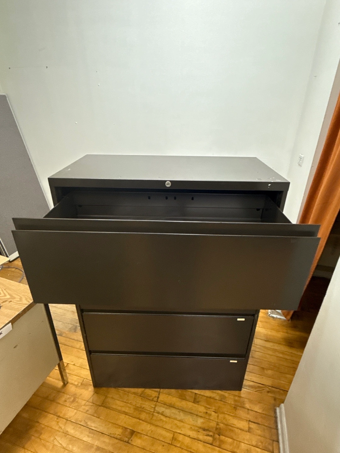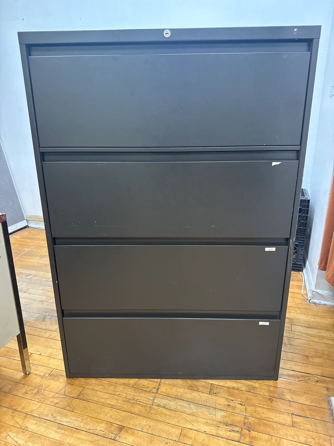 Selling a sturdy 4-drawer lateral filing cabinet. It's in good condition and ready to organize all your important documents. Perfect for a home office or business! 18 inches deep 36 inches wide 53 1/2 inches high