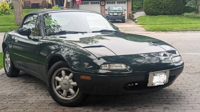 Mazda Miata British Racing Green Special Edition, #1158 of 4000 made. Features a new timing belt, new radiator, and reupholstered seats. Includes a NARDI wooden steering wheel and a new Android stereo with GPS, CarPlay, and Android Auto, plus upgraded speakers and amplifiers. It has a performance exhaust (installed by previous owner). I am the second owner. The AC is not currently working, and the factory alarm is also not working. This is a US model, so mileage is in miles (235,000 km). I don't need to sell it, so please, no lowball offers. If the ad is still up, it's available. Thanks for not wasting my time.