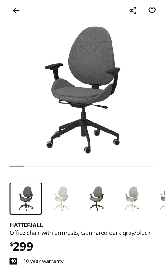 Looking to sell my IKEA HATTEFJÄLL office chair in Gunnared dark gray/black. It's in great shape and super comfy for working from home! Retails for $299 plus tax.