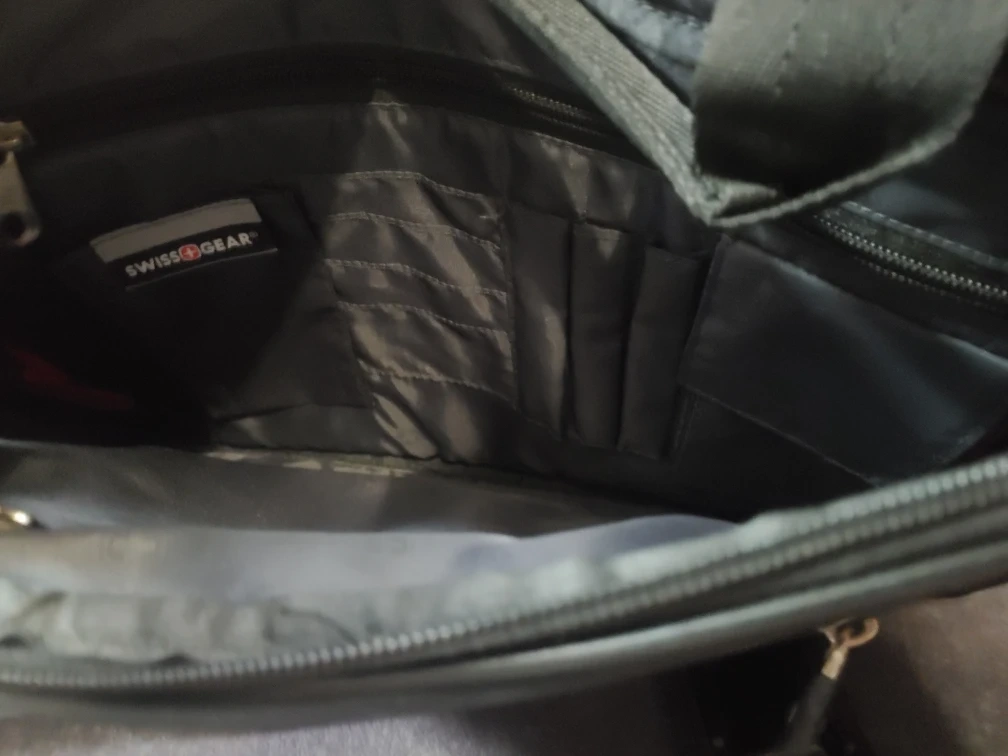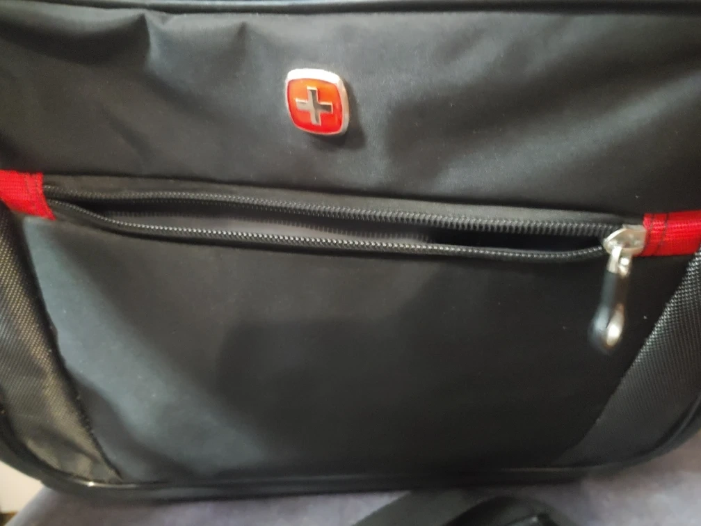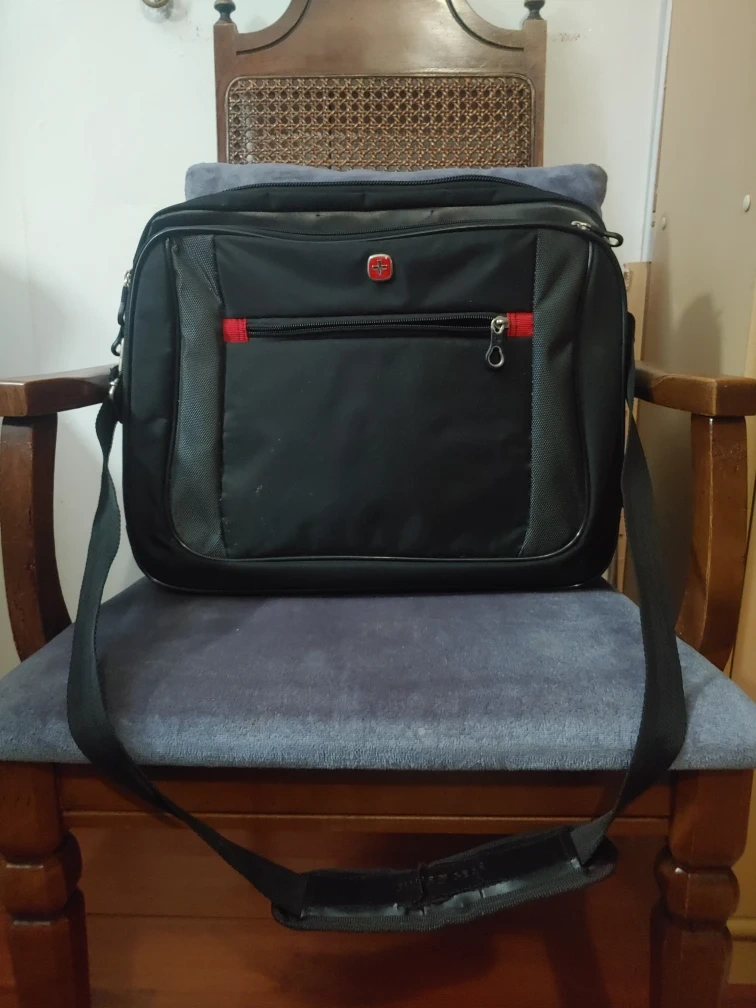 Selling a Swiss Gear laptop bag in perfect condition. It's black with red accents and has a shoulder strap. Plenty of compartments inside to keep everything organized! Has a length of 15.6 inches