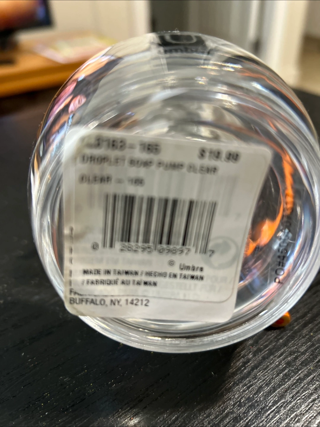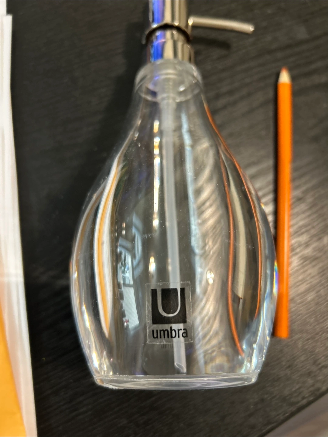 This is a clear Umbra Droplet soap pump in great condition! It's a stylish and functional addition to any bathroom or kitchen. The original price was $19.99