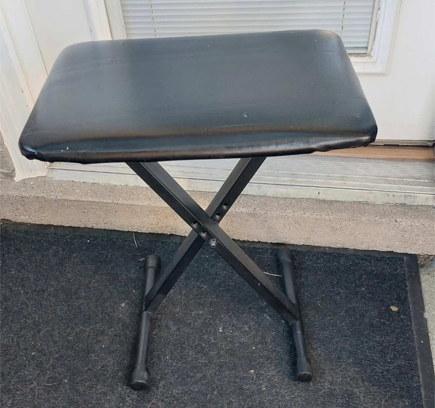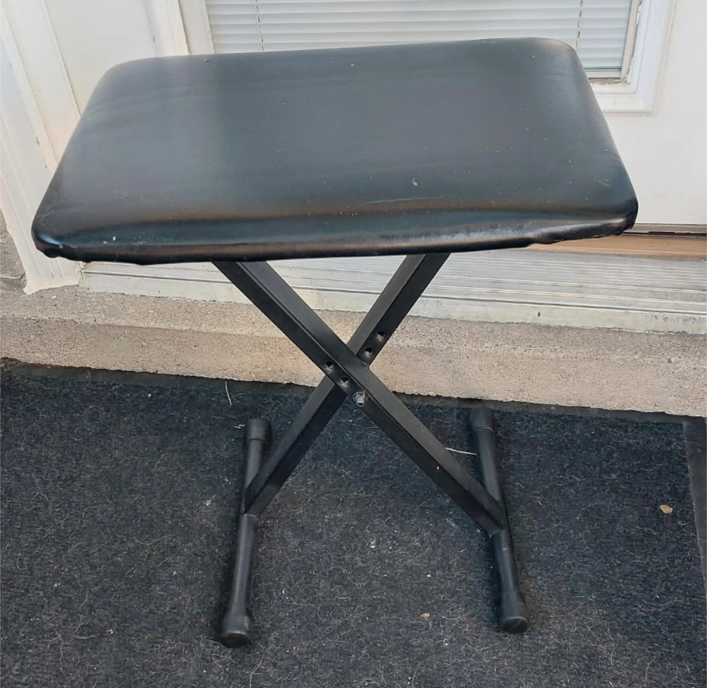 Selling a black folding stool! It's in good condition and perfect for extra seating when you have guests over. It's lightweight and easy to store when not in use