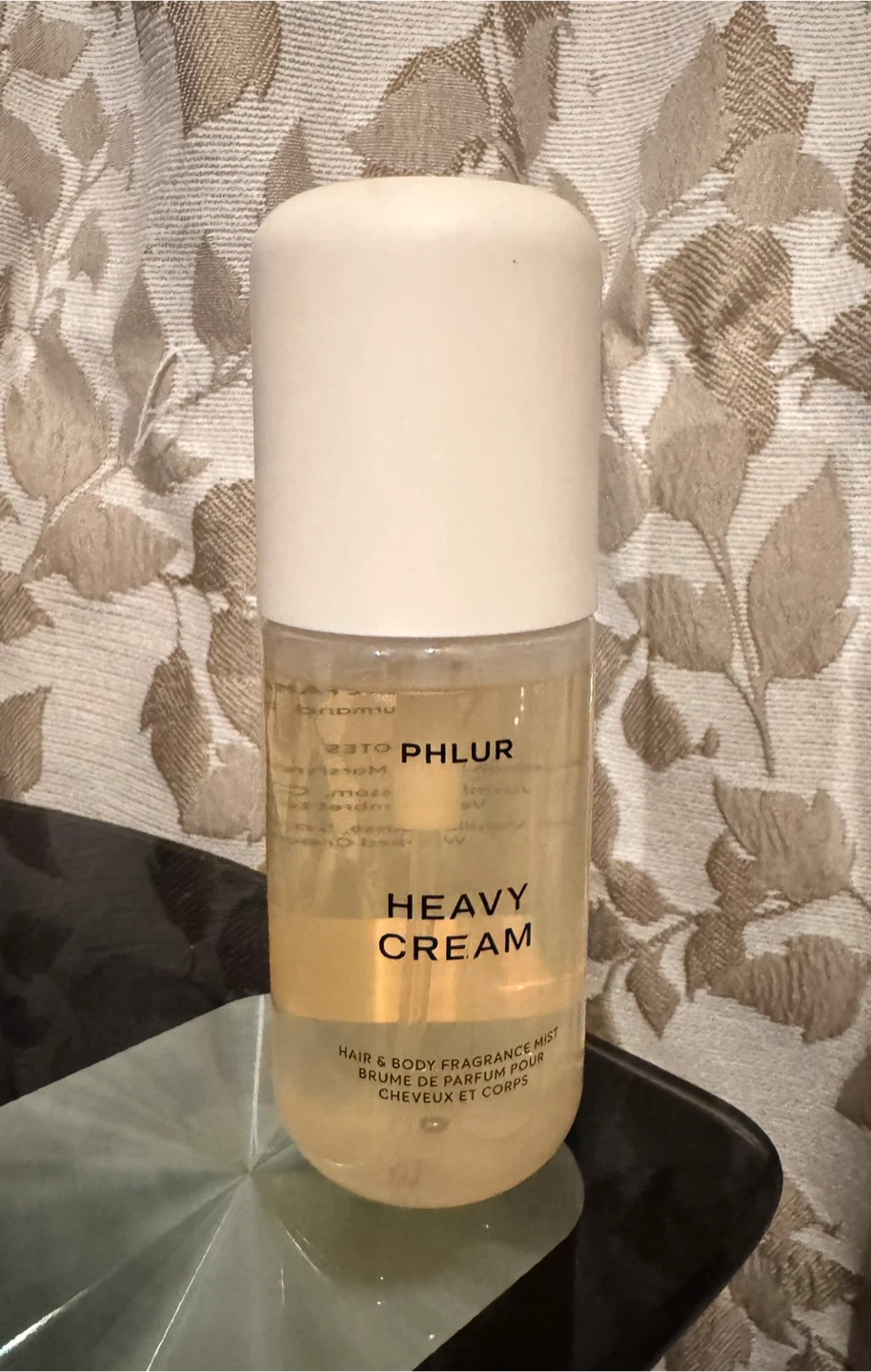 PHLUR Heavy Cream hair and body fragrance mist. Creamy and light gourmand fragrance suitable for daily use. Used a few times—mostly full. Purchased this year
