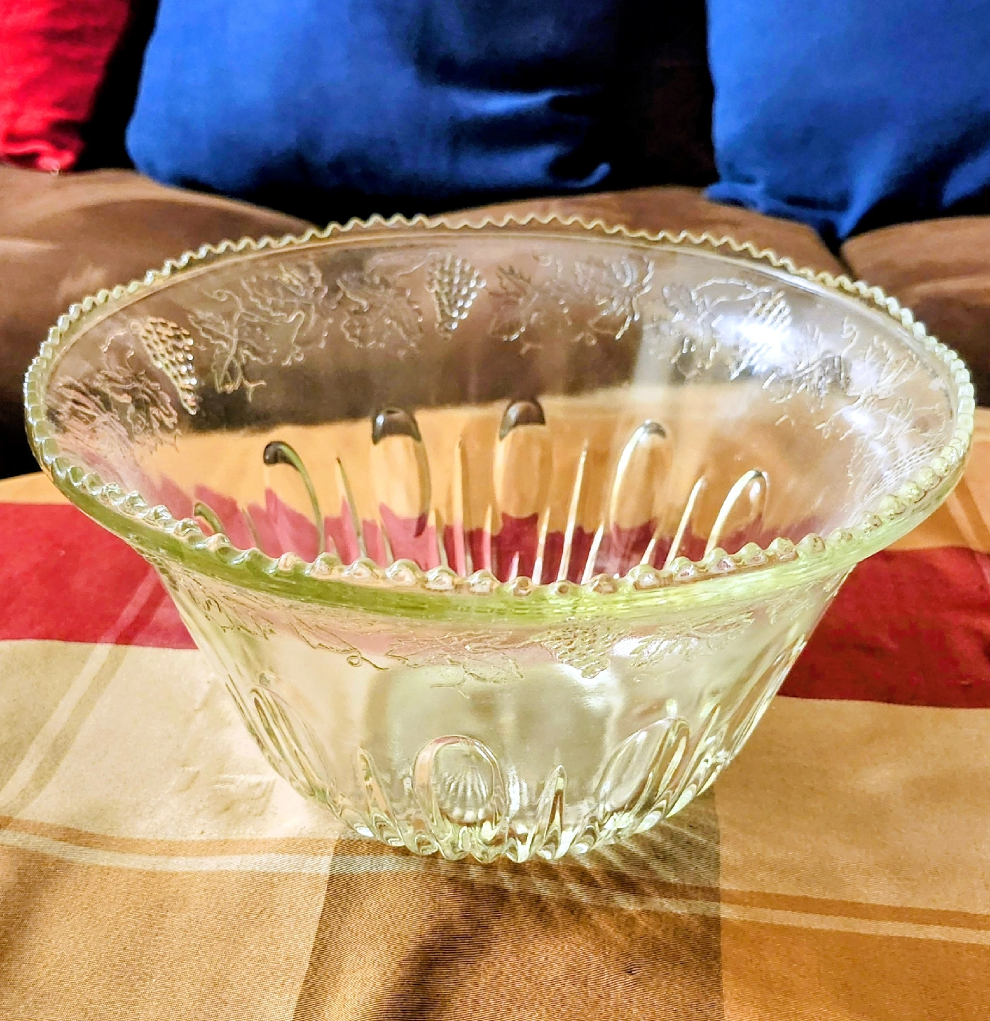 Vintage Clear Glass Punch Bowl with Grape Design