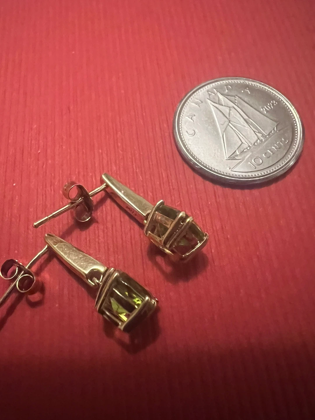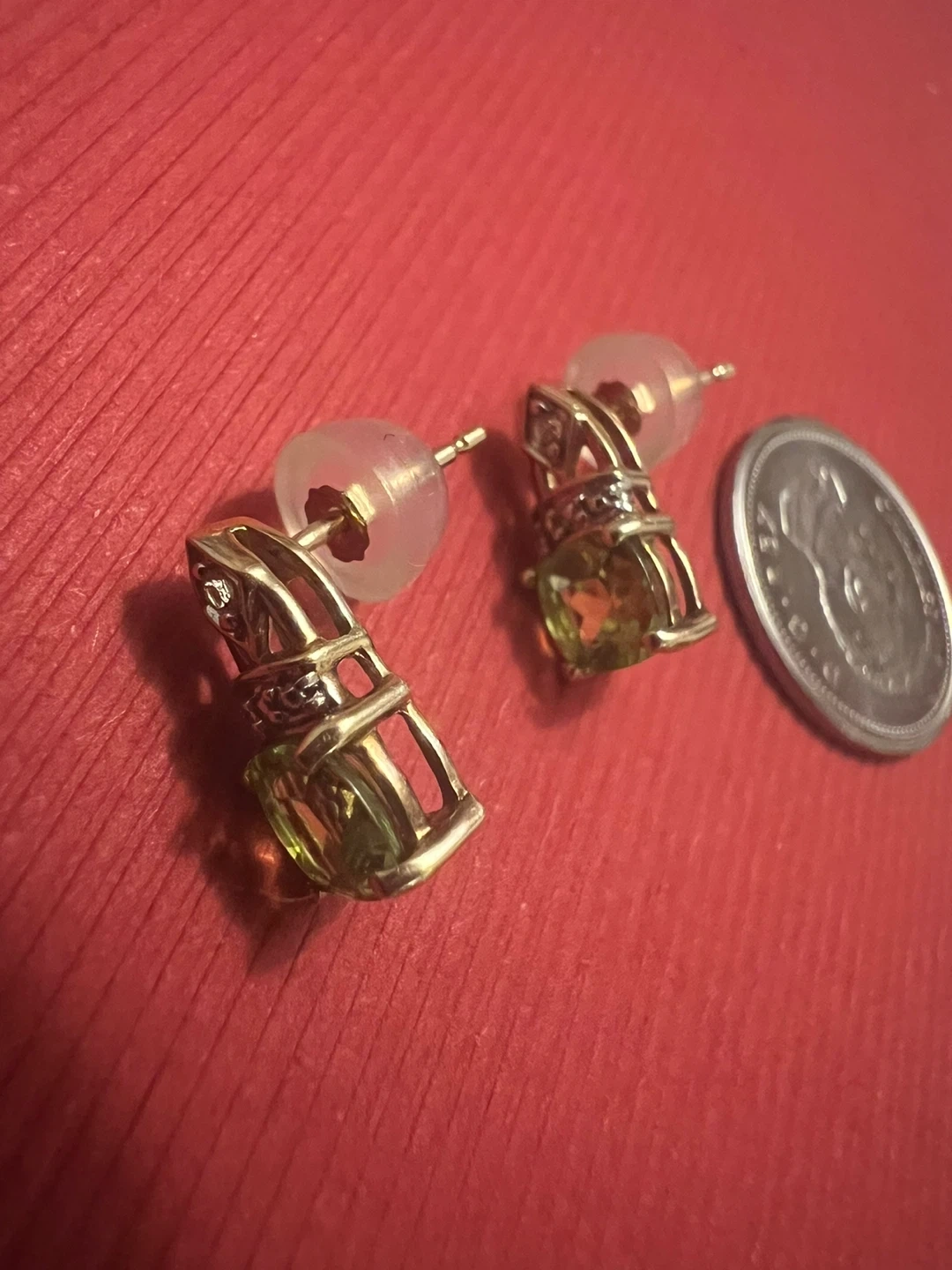 Selling a pair of 10 k peridot and diamonds earrings . They have a unique and elegant design. Perfect for adding a touch of colour to any outfit! 1.60 ctw peridot ( 0.80 carat each earring )