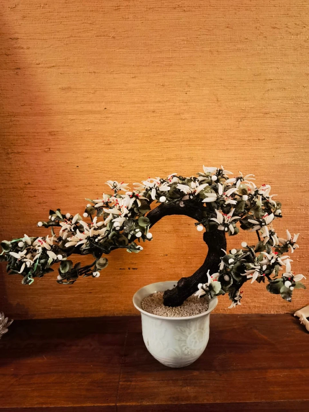 A lovely bonsai tree in a decorative pot, perfect for adding a touch of nature to your home! It's in great shape and ready to find a new home