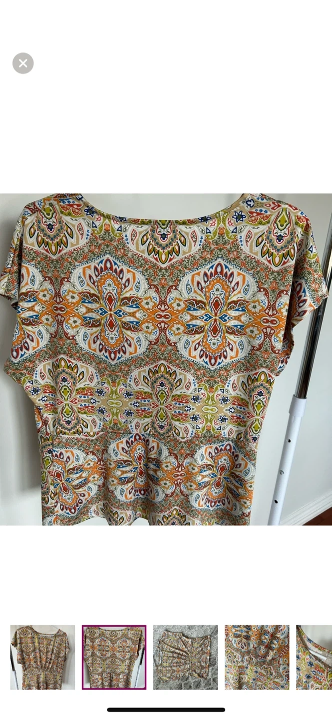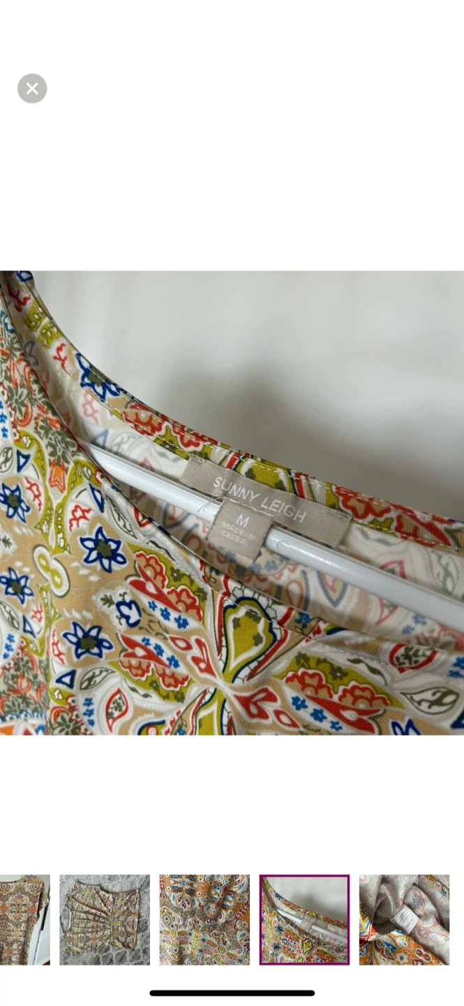 This is a Sunny Leigh blouse in size M. It features a colourful paisley pattern. It's in great condition and ready for a new home