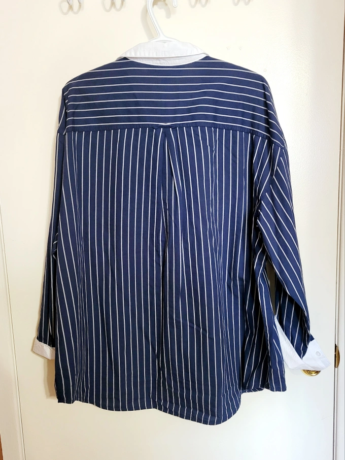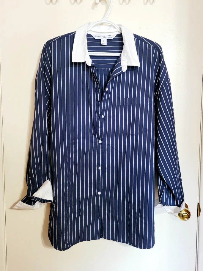 254Oversized Boyfriend Shirt -From/Brand: Old Navy -NEW WITHOUT TAGS! -Size: Women's LARGE -Fits like XL-1X -Material: 100% Cotton -Colour: Navy Blue & White 📸PLEASE SEE PHOTO GALLERY FOR MORE DETAILS ABOUT THIS ITEM📸 Asking only $5 (FIRM & FINAL) 💰CASH ONLY, PLEASE💰 ⚠️Please only message if you are SERIOUS about buying AND you know when you'd like to pick up.⚠️ 🚙Located in North Oshawa BEATRICE & RITSON area.🚙 ⏰️No holds longer than 2 days.⏰️ ❗️CROSS POSTED❗️