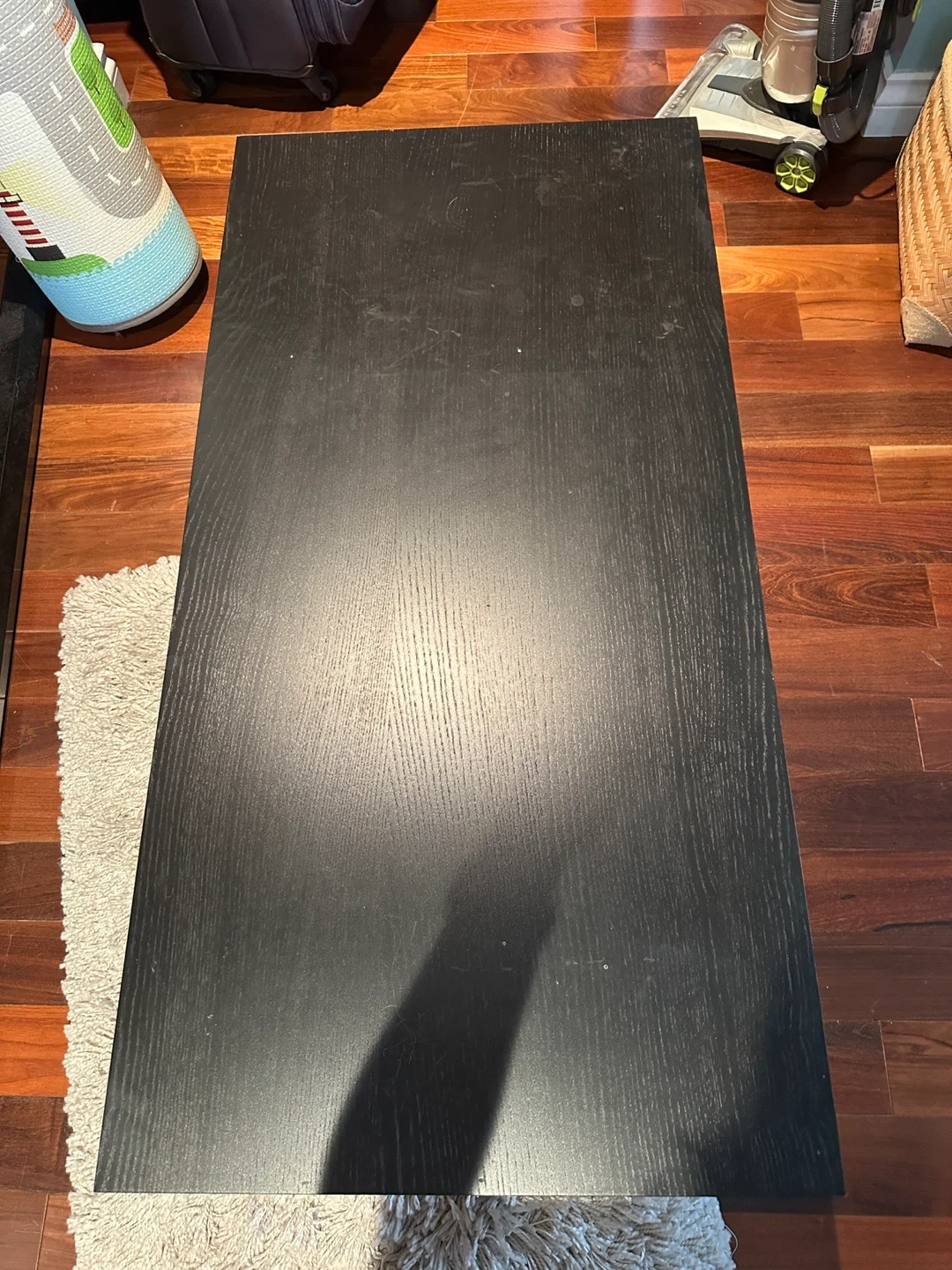 Selling a black IKEA KLUBBO coffee table. It's in good condition and ready for a new home! The table's dimensions are approximately 47 inches in length and 31 inches in width, making it a great size for most living spaces
