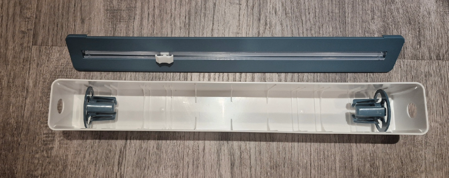 Keep your kitchen tidy with this food wrap dispenser! It comes with a cutter for easy and even slicing of your plastic wrap. Cling film, aluminum foil, or baking paper.