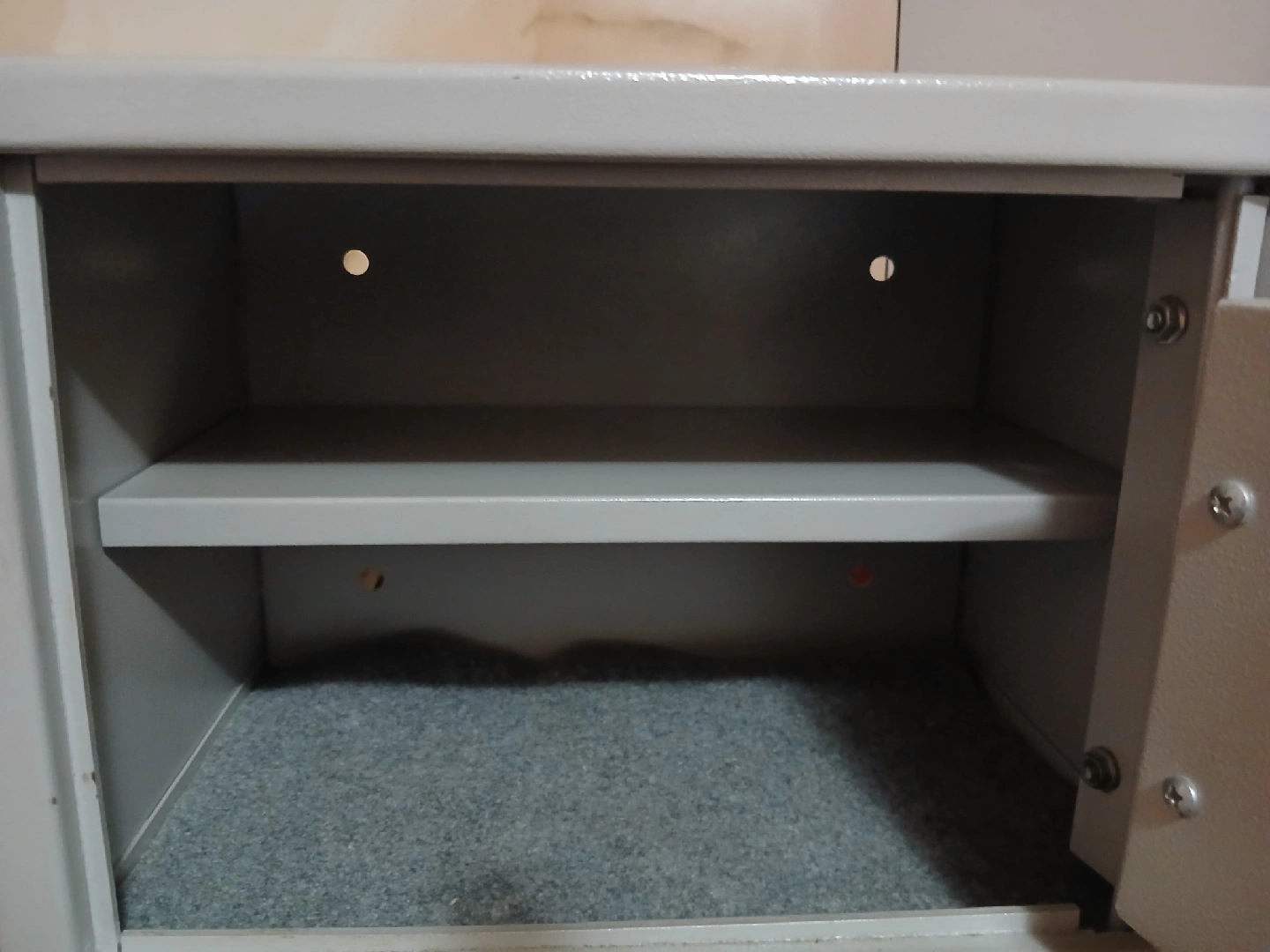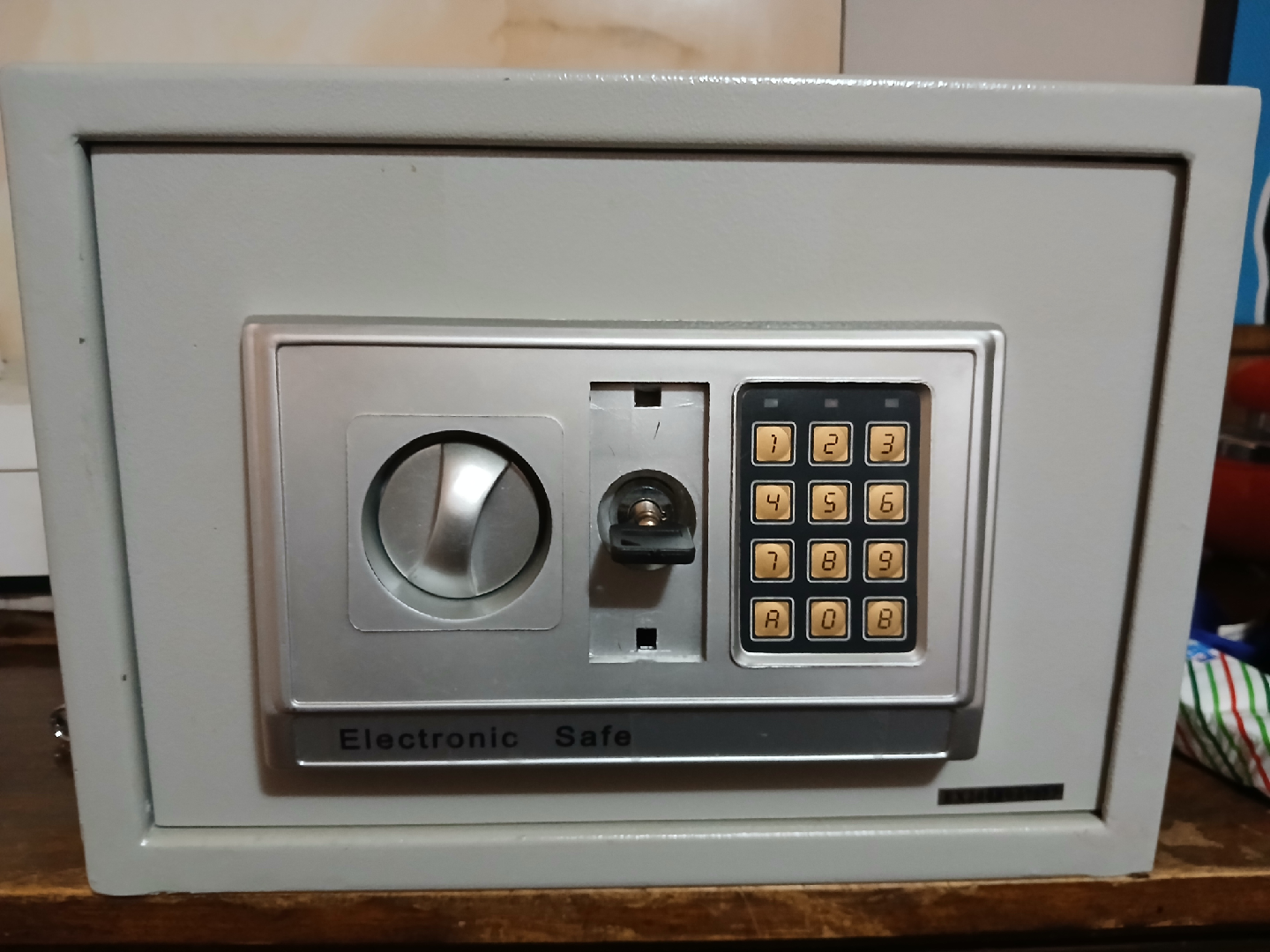 Selling a functional electronic safe in grey. It features a digital keypad and a key lock for added security. Comes with two keys and new batteries. Easy password reset. Great for storing valuables!