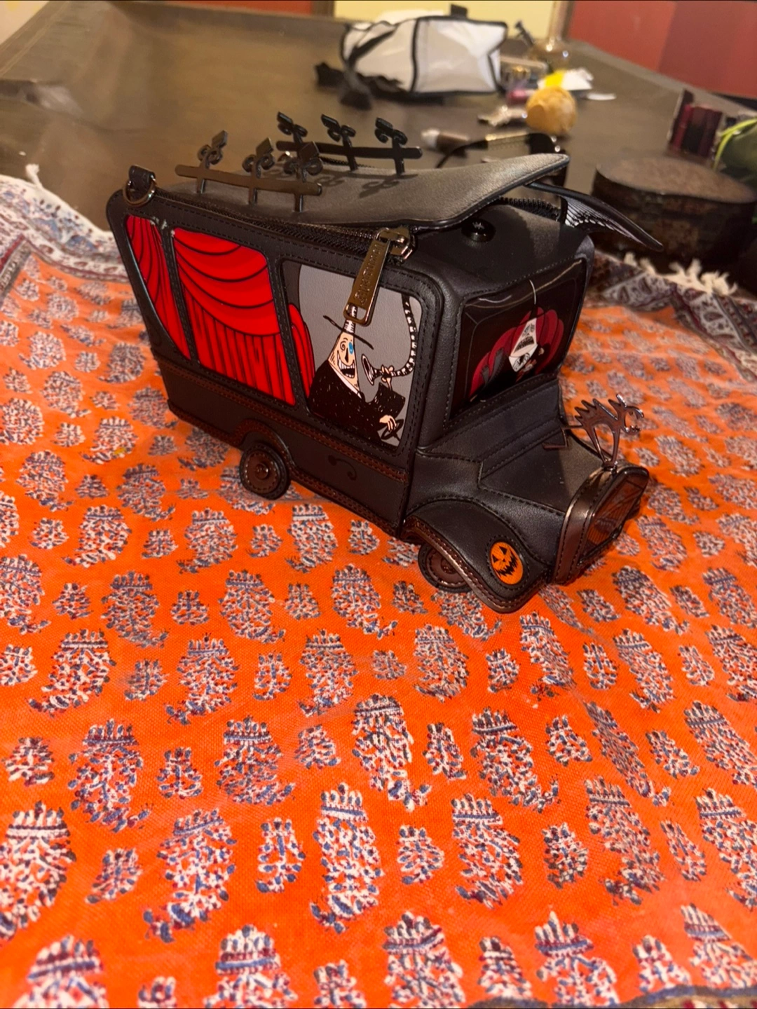This is a Loungefly Disney Tim Burton's The Nightmare Before Christmas Hearse Bag! It's a super unique bag with lots of fun details 1 of kind If u find it’s near 200 at the Disney store Trade or best offer Even as low as 60 70 cash