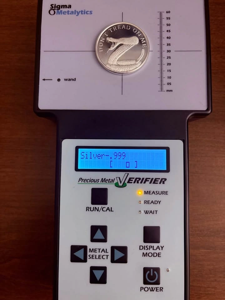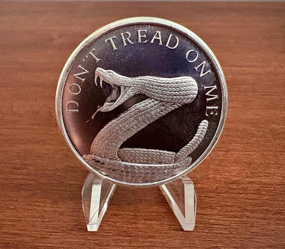 1 oz .999 pure/fine silver bullion 2024 round “Don’t Tread on Me” from the Silver Shield Collection.
