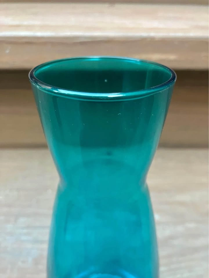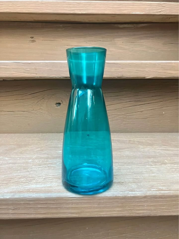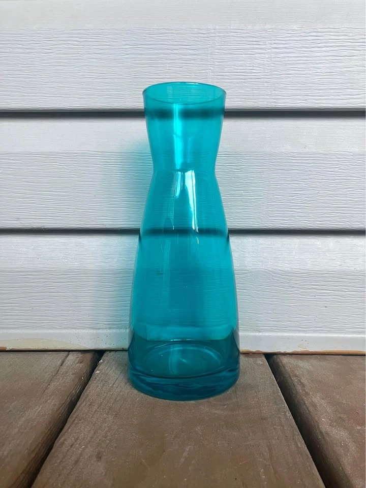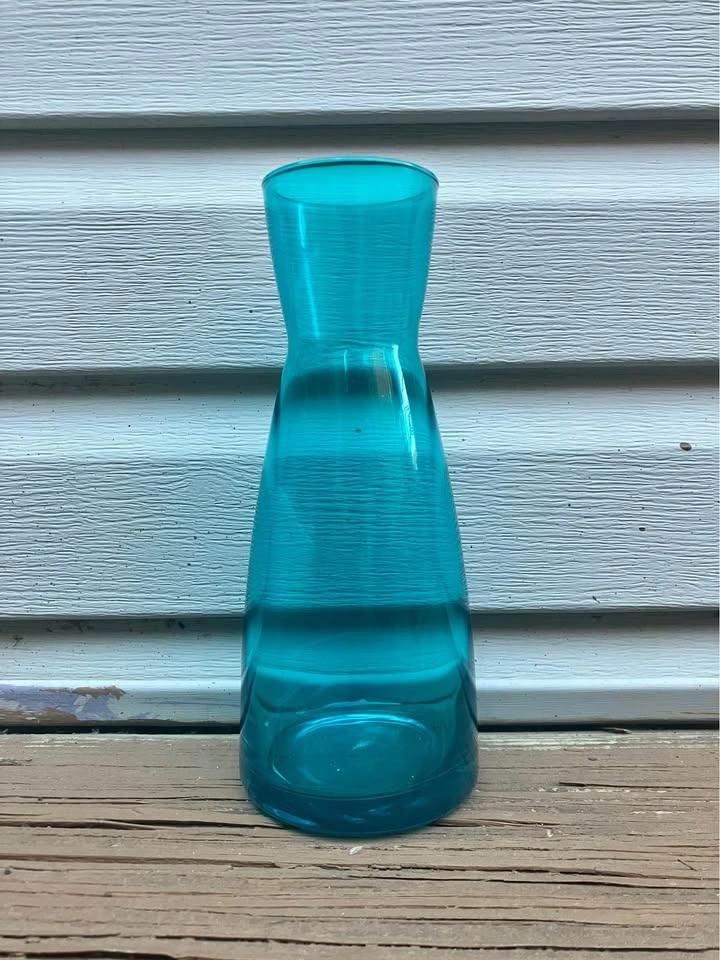Vase adds a pop of color to any decor. Measures 8” tall, with a mouth diameter of 2.25” and a bottom diameter of 3”. Base is 1/2” thick. From a smoke and pet free home. Check out in person before purchasing. Thanks for looking.