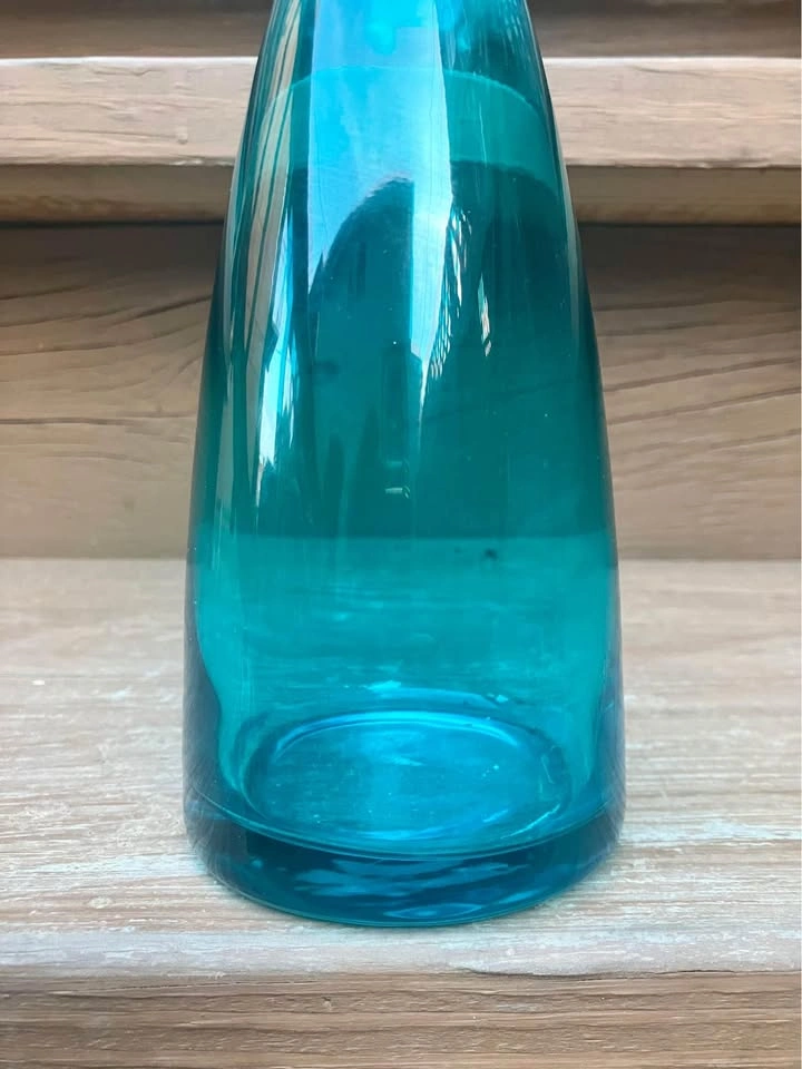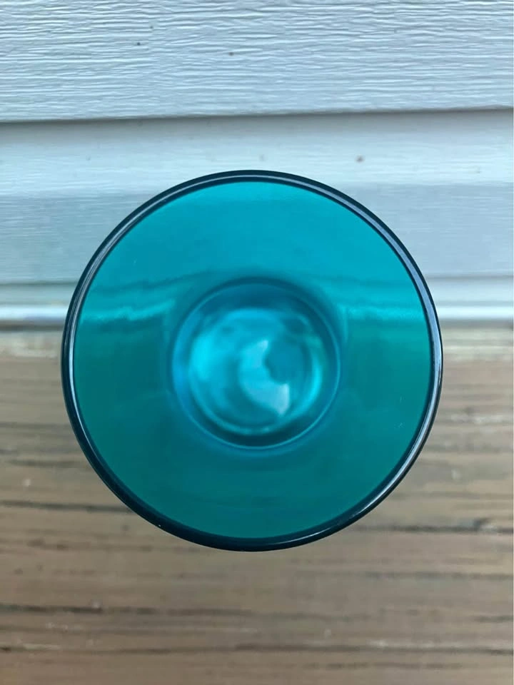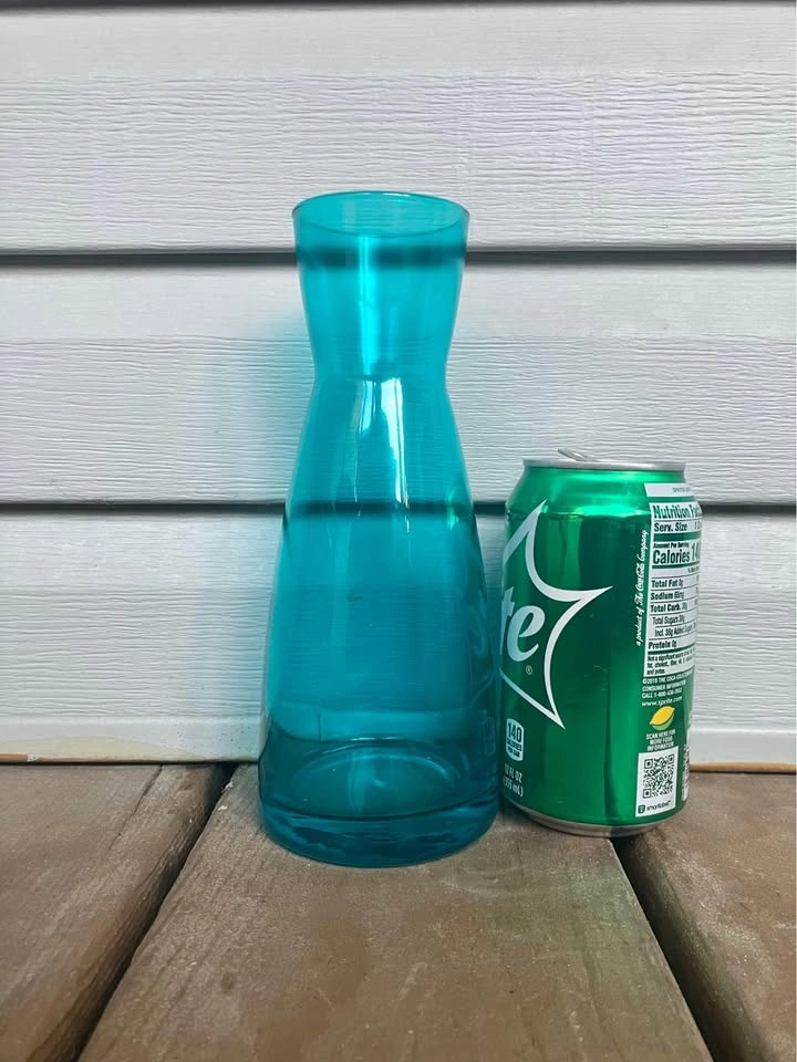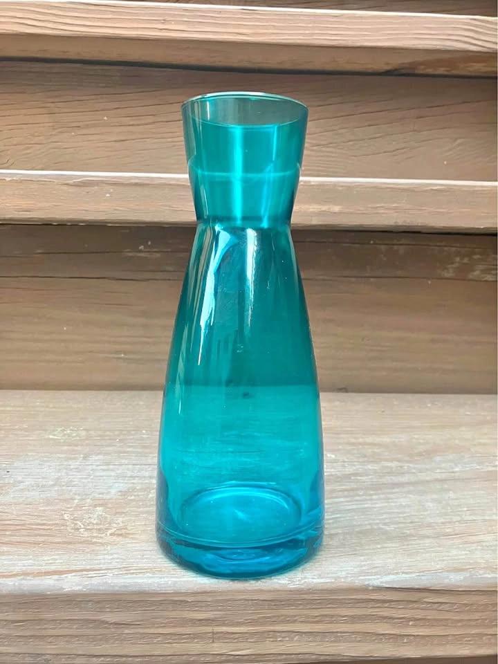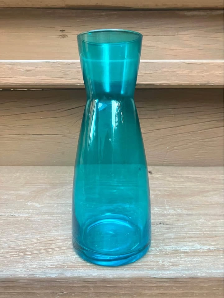 Vase adds a pop of color to any decor. Measures 8” tall, with a mouth diameter of 2.25” and a bottom diameter of 3”. Base is 1/2” thick. From a smoke and pet free home. Check out in person before purchasing. Thanks for looking.