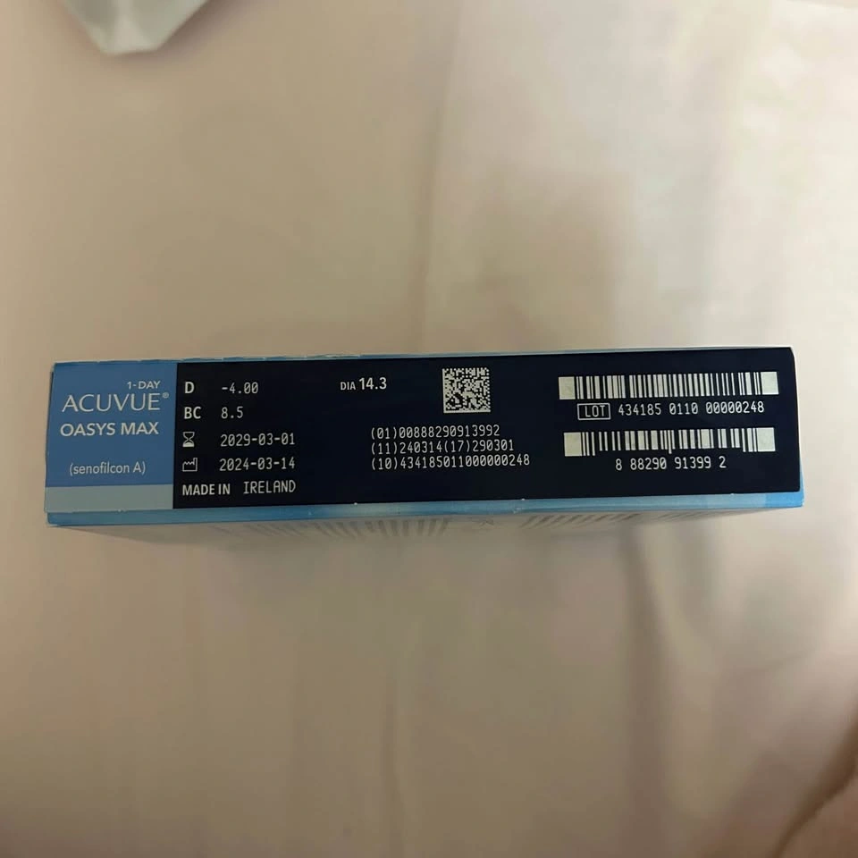 Brand new box of daily acuvue oasys max contact lenses. Box is still sealed. Purchased extra. -4.00 prescription. Expires in 2029. Purchased extra supply that I don’t need. Pick up finch and Bathurst