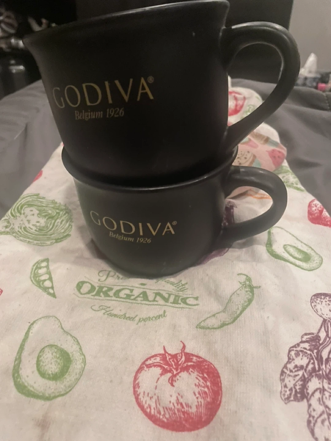 Selling a set of two Godiva Belgium 1926 coffee mugs! They are black with the gold Godiva logo on them. Perfect for enjoying your morning coffee or hot chocolate!