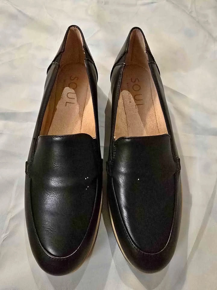 Elegant and comfy SOUL by Naturalizer black loafers – perfect for work, casual wear, or dressy nights out.