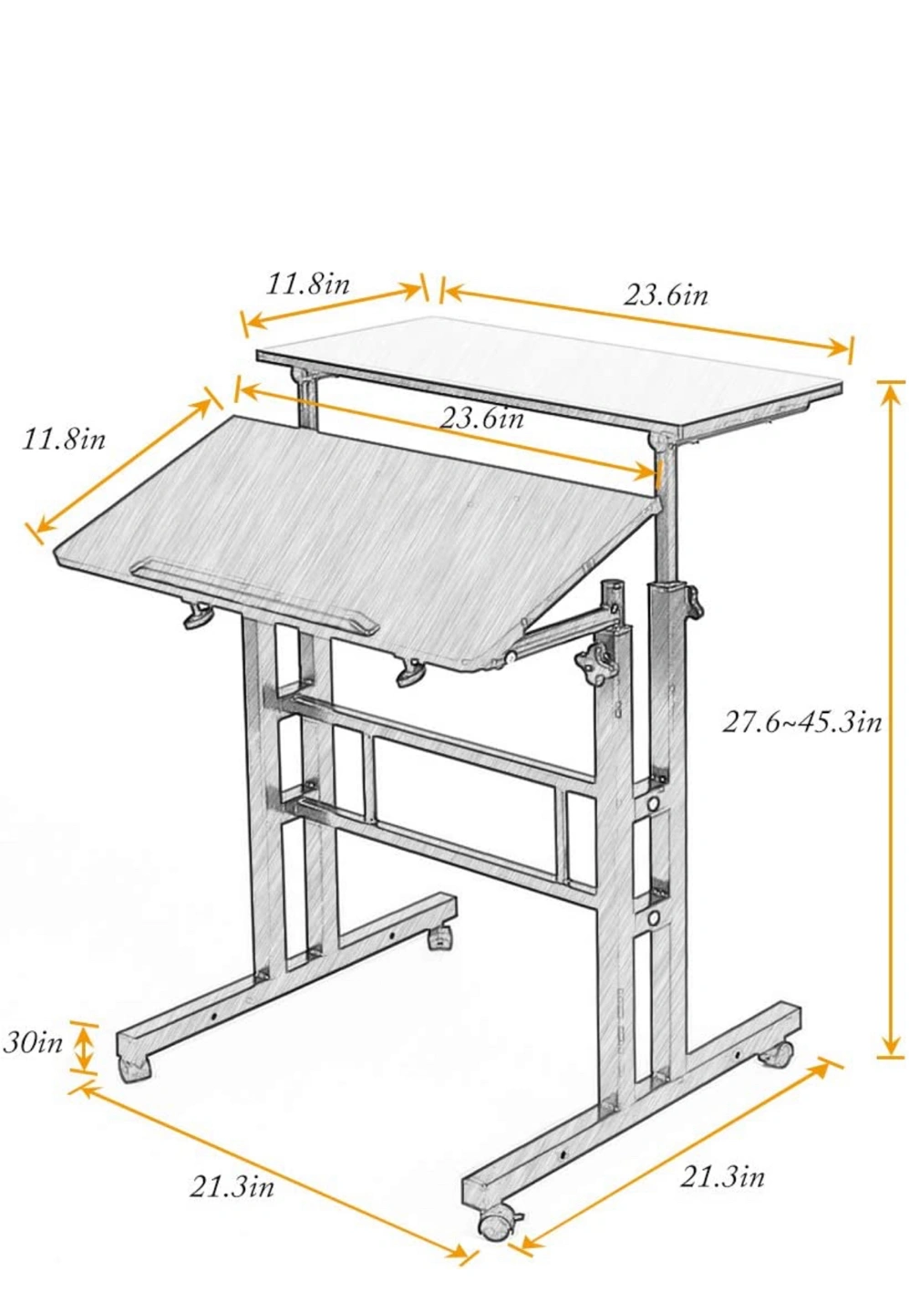 Dimension 23.6L * 11.8W * 27.6-45.3H inch
