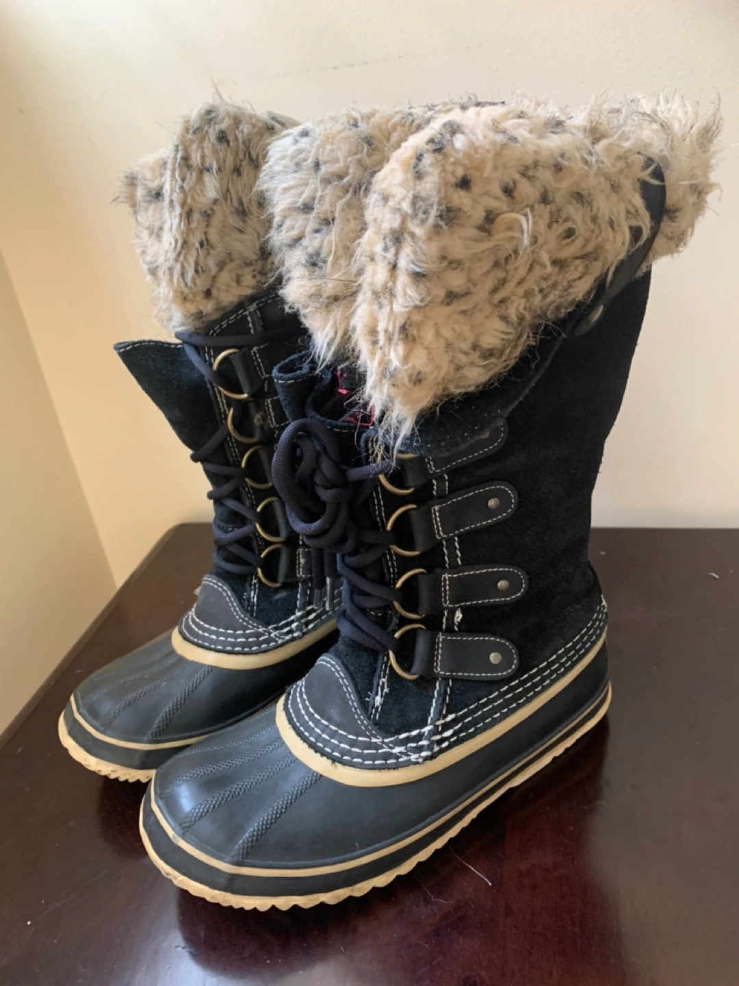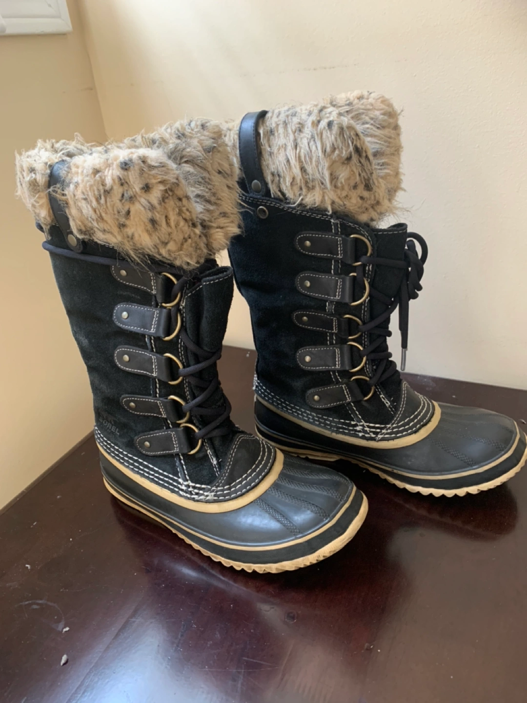 Hi I’m selling a pair of Sorel winter boots, ladies size 7. I bought a new pair, so I don’t need this one. THESE ARE IN GOOD CONDITION! Final sale, no returns. Msg me if interested.