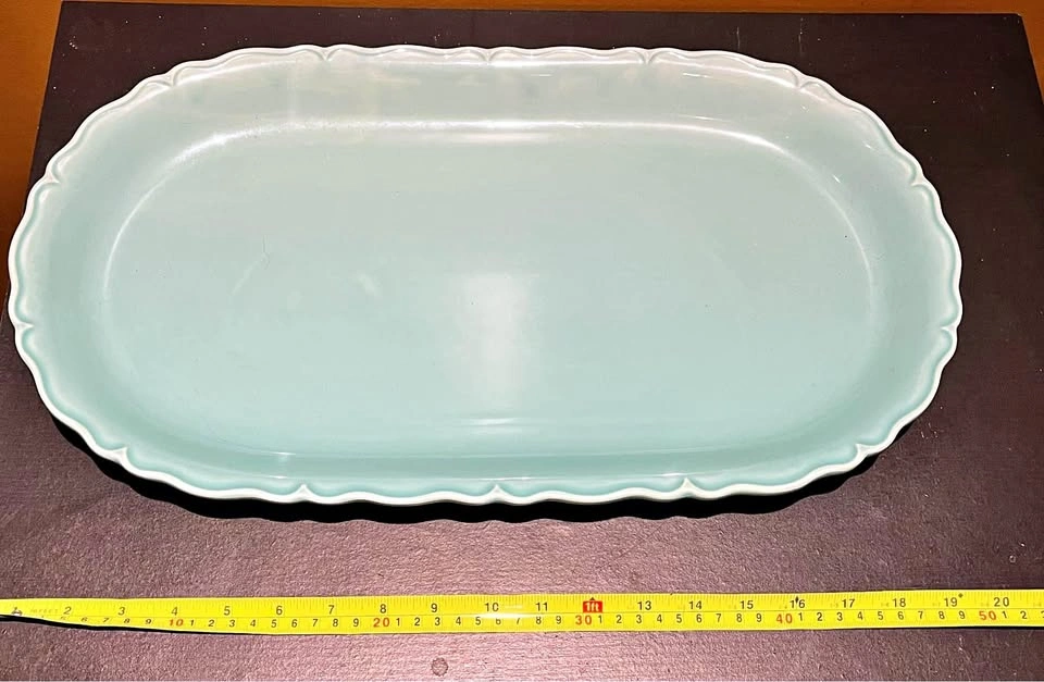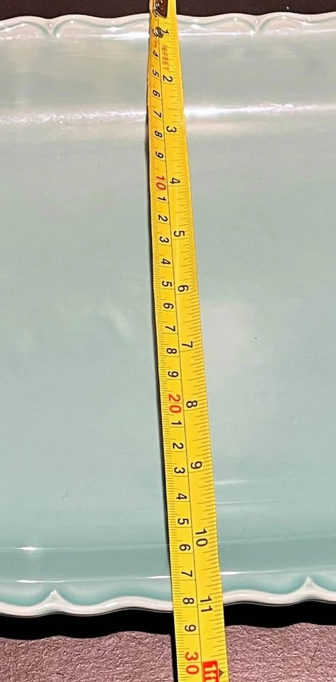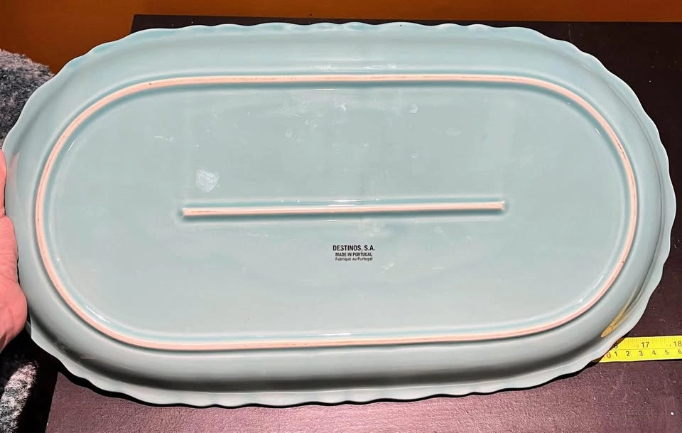Beautiful long oblong shaped serving platter, aqua green colour with a soft scalloped edge. Made in Portugal. Approx 20” long x 11” wide. Pick up evenings and weekends in the Birchmount and Danforth Avenue area or during the day on Crockford Boulevard as long as arrangements are made at least the night before desired pick up. Cash or interac e-transfer accepted.