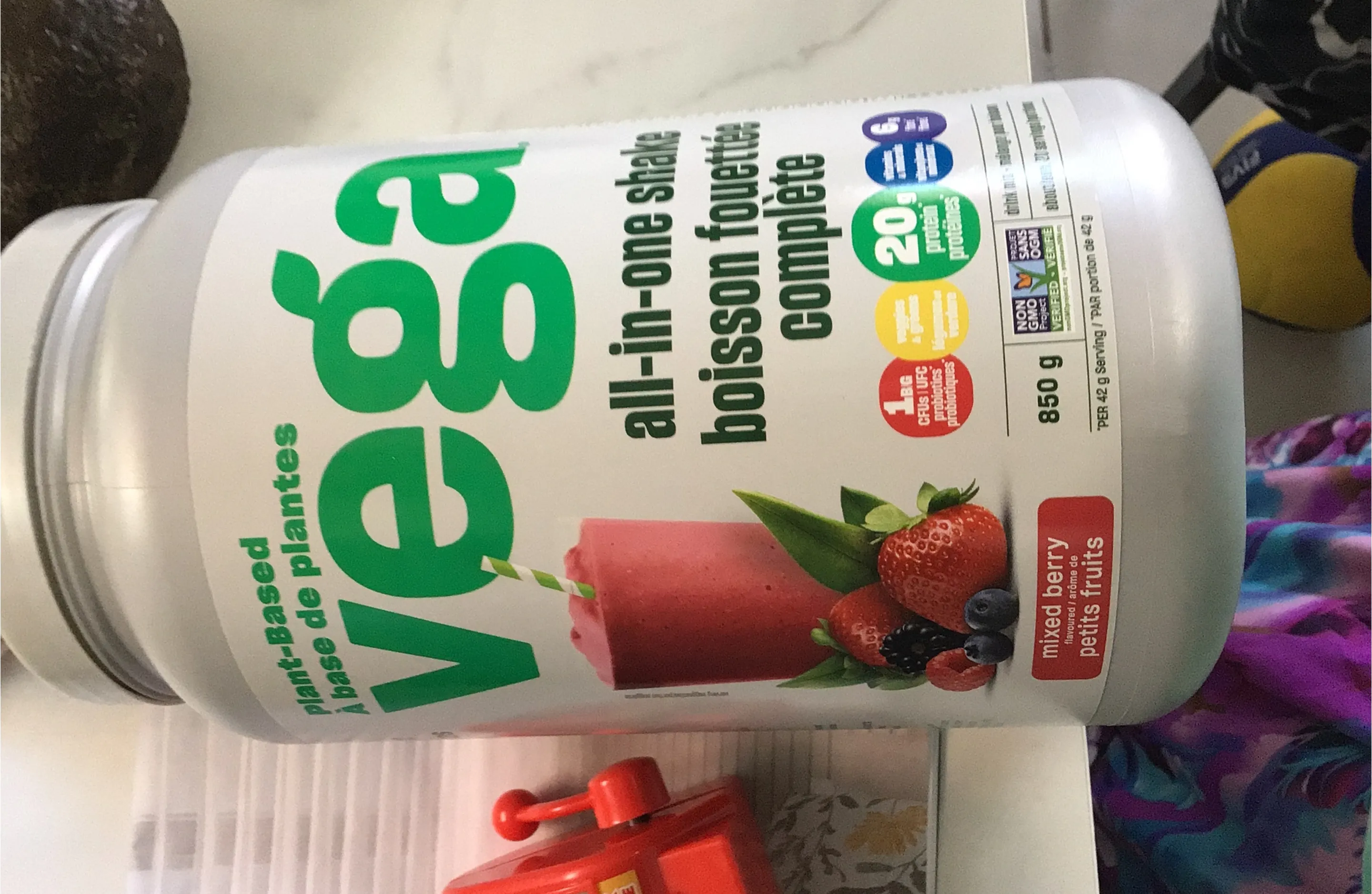 Selling a tub of Vega All-in-One Shake in Mixed Berry flavour! It's plant-based and contains 20g of protein per serving. It also has 1 billion CFUs of probiotics. Perfect for a quick and nutritious drink mix!