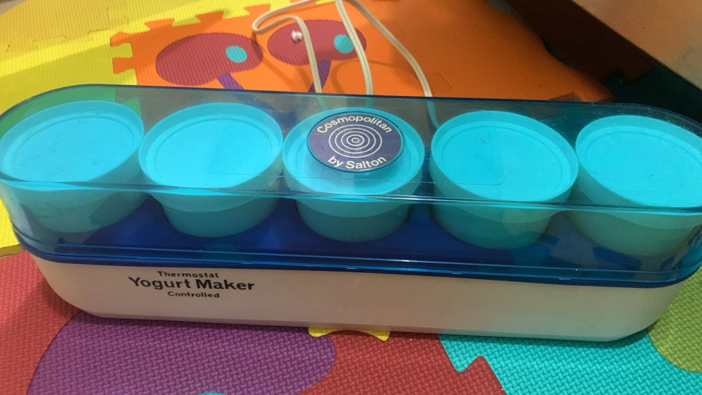 68Selling a Salton Cosmopolitan Thermostat Controlled Yogurt Maker. It has a blue and white design and includes the containers for making individual servings of yogurt. Great for making your own healthy snacks at home! please note it's used but works well