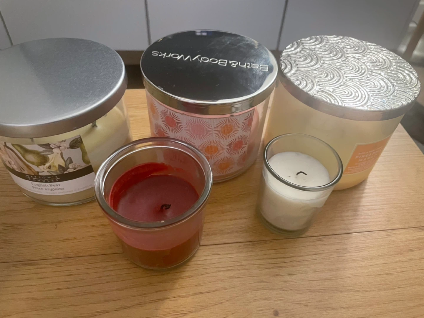 BATH & BODY WORKS BLACK MODERN BRANCHES LARGE 3 WICK CANDLE HOLDER SLEEVE 14.5OZ and set of 5 candles Please see photos for candles