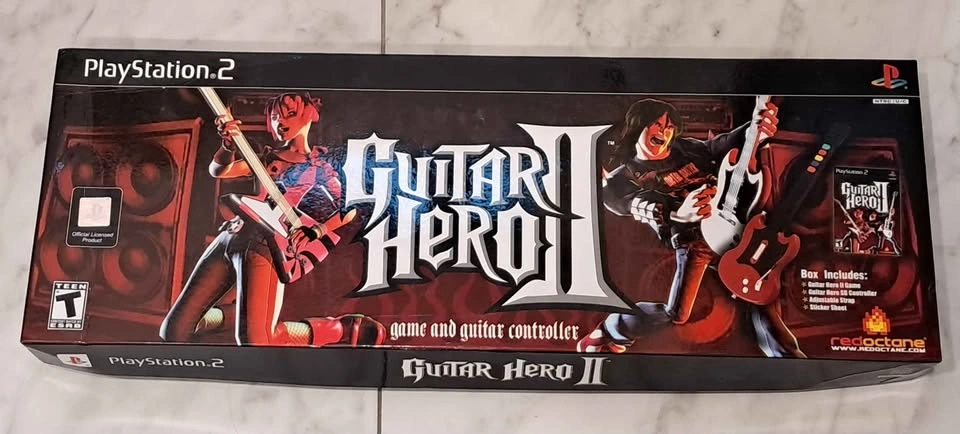 Guitar hero 2 and guitar controller Boxed Inside the box is dirty but on the outside it looks pretty good.