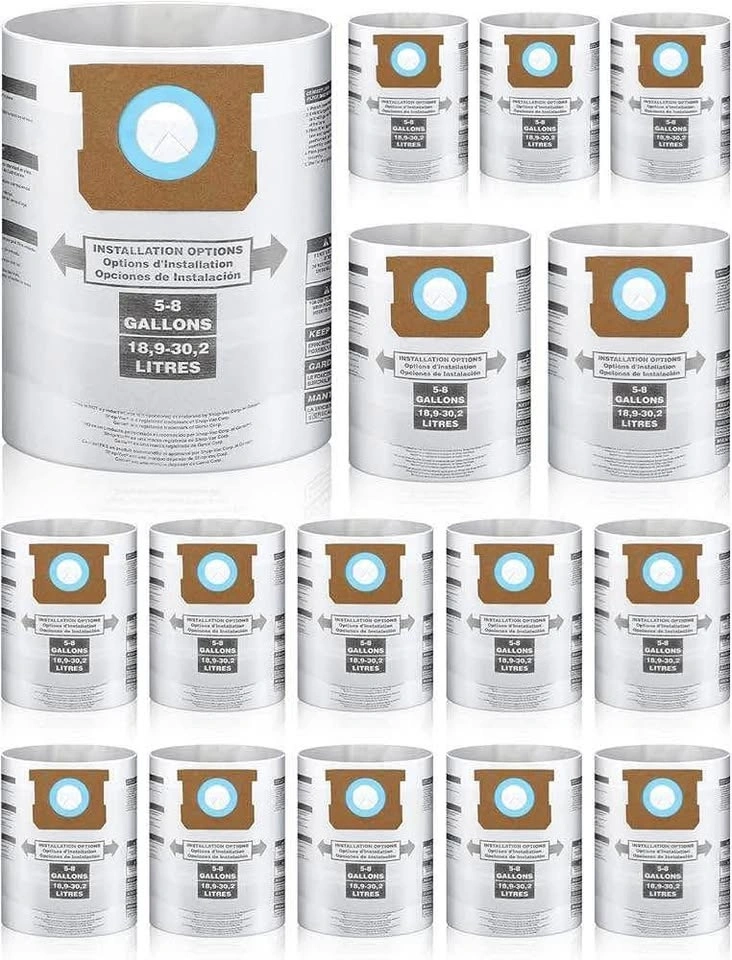 16 PACK Vacuum Bags Compatible with Shop Vac 5-8 Gallon Dust Collection Bag Type H Double Layer 15/16 bags are new. 1 bag had been opened, but not used. Unfortunately not compatible with my vacuum. Originally purchased for $40 #102 Pickup near 10800 Bayview Avenue, Richmond Hill