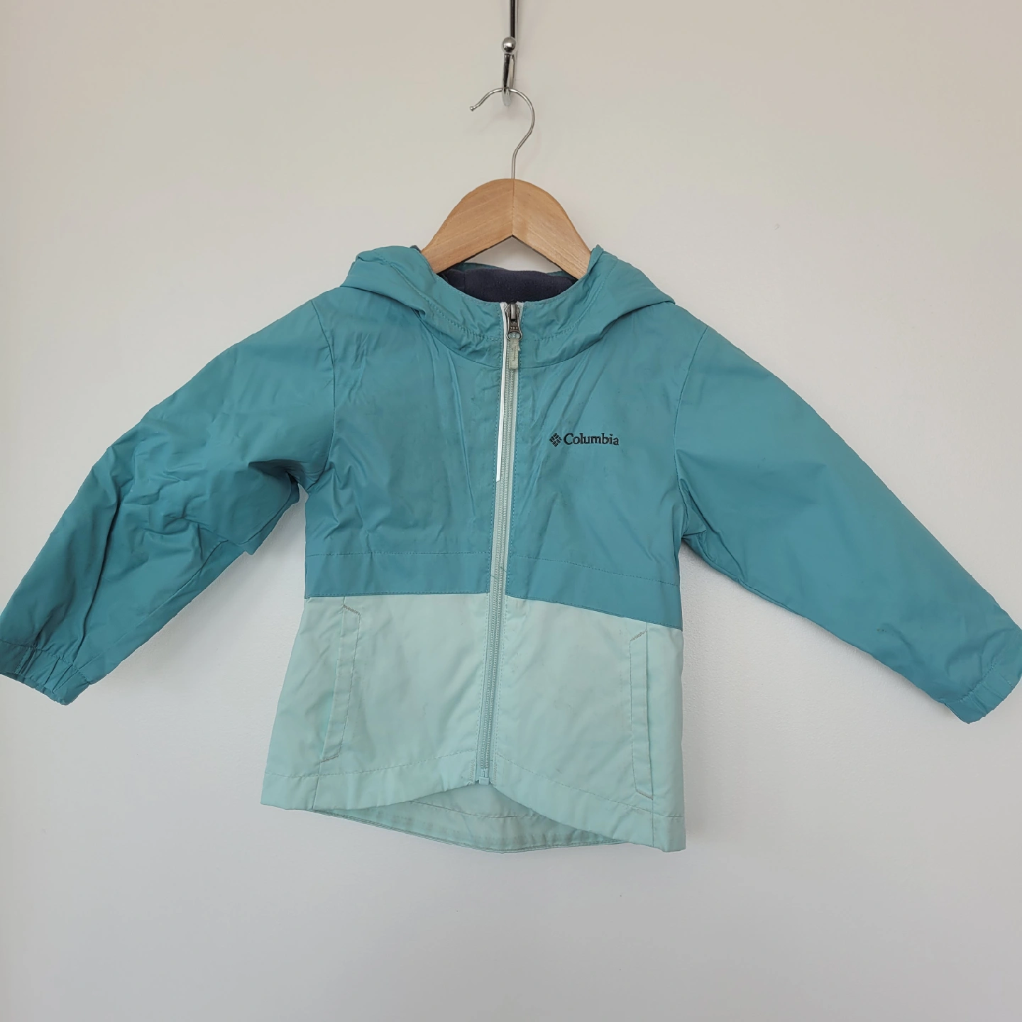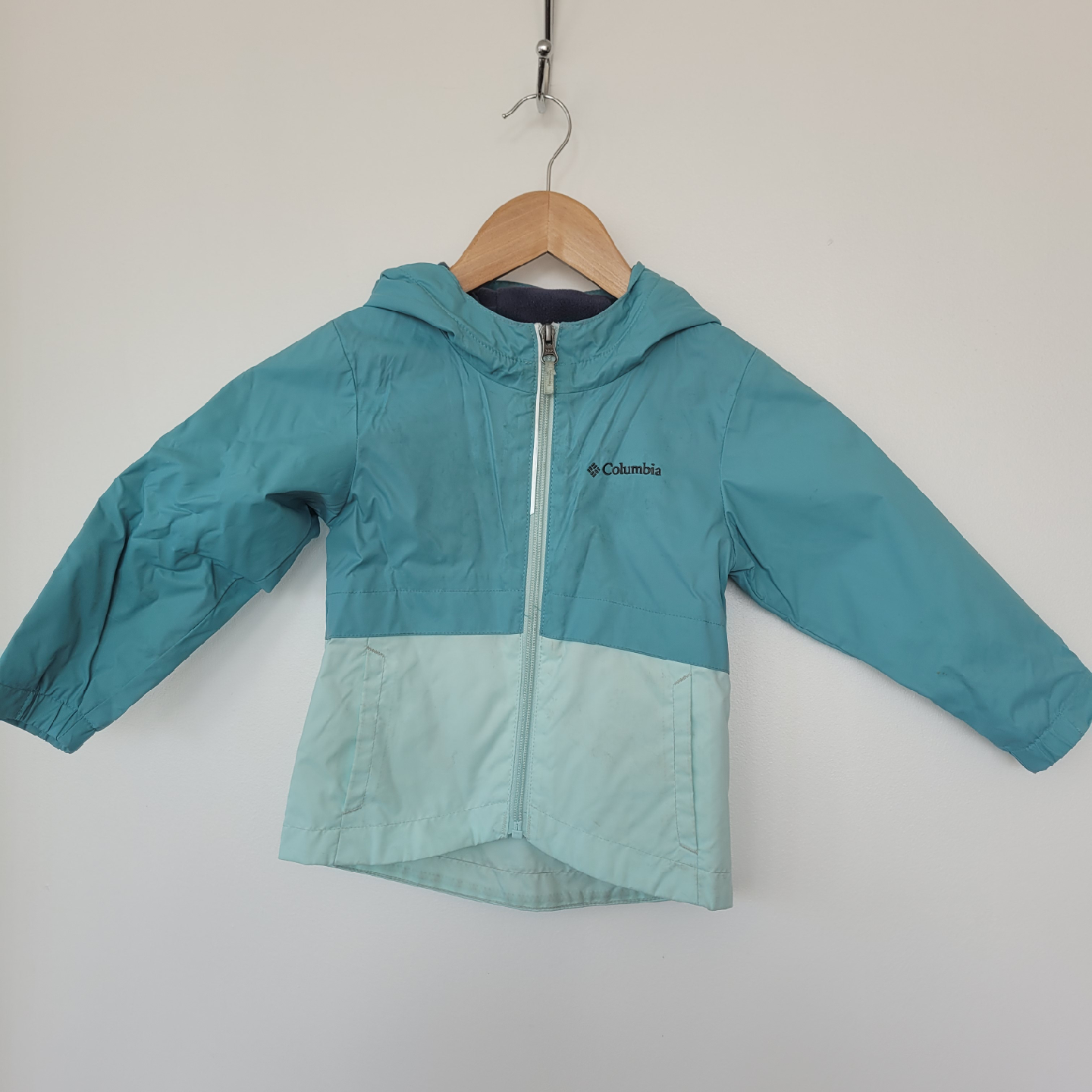 Keep your little one dry and stylish with this Columbia rain jacket! It's a toddler size 3T and features a lovely turquoise colour. Perfect for those unexpected showers!