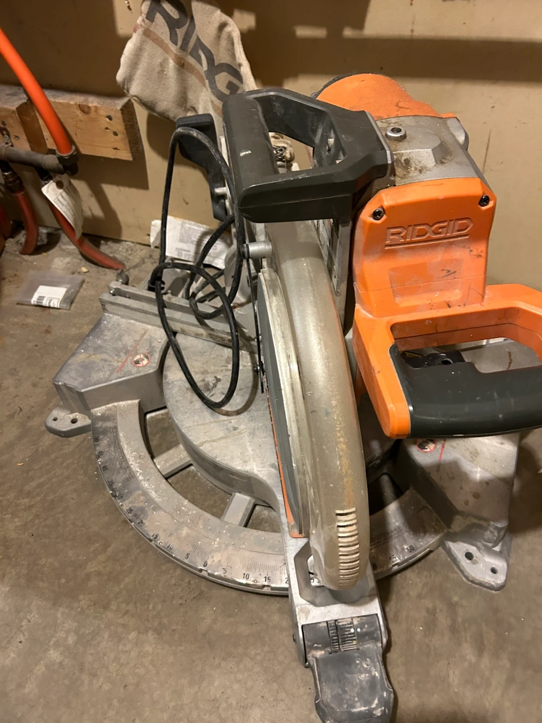 Selling a Ridgid miter saw. It's in used condition but still works great for all your cutting needs