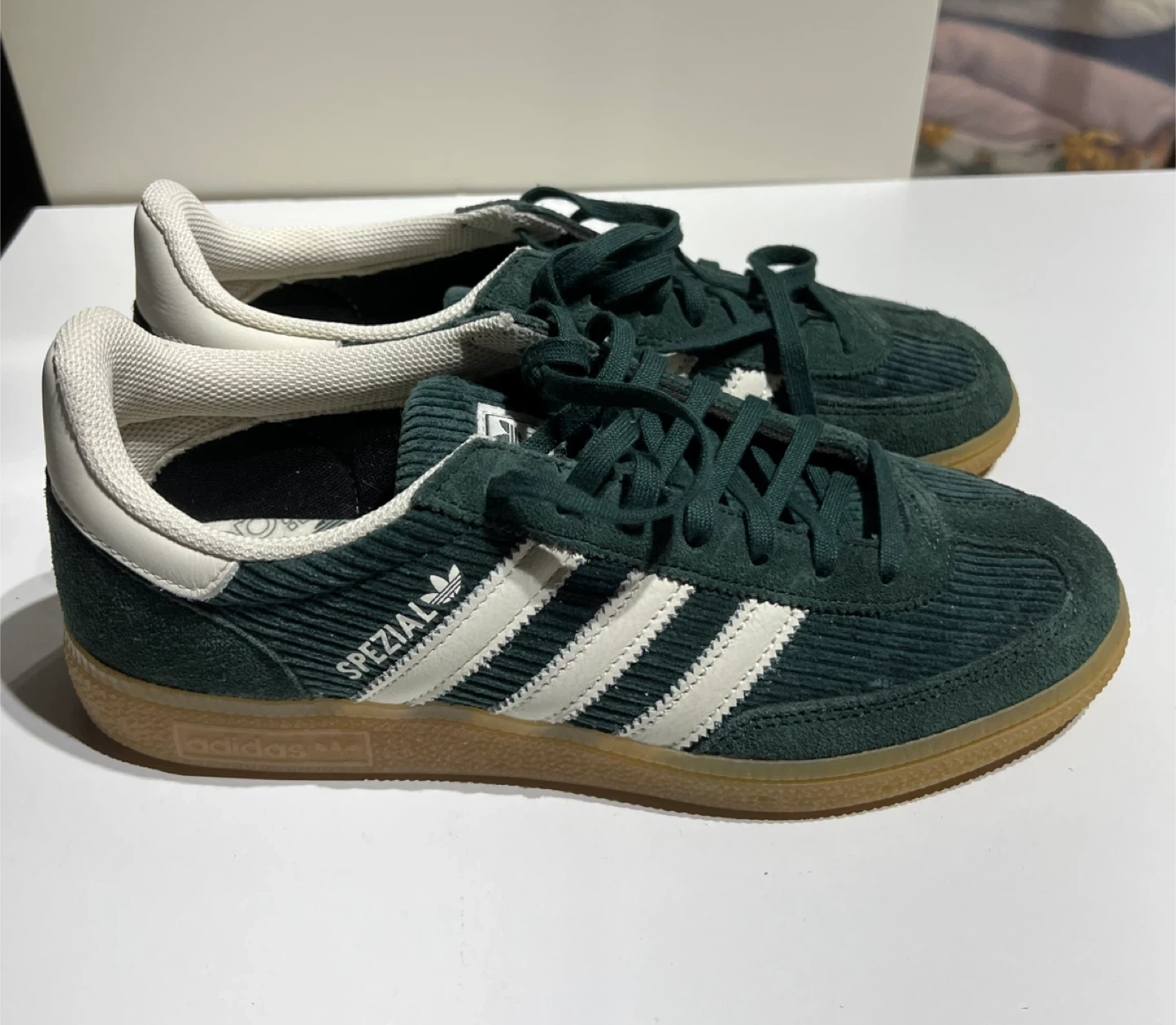 - Fall 2024 release; purchased September 2024 and rarely worn since then - Size: 8.5 - Colour: Mineral Green / Off White / Gum - Product code: IG1976 - Corduroy upper and suede overlays