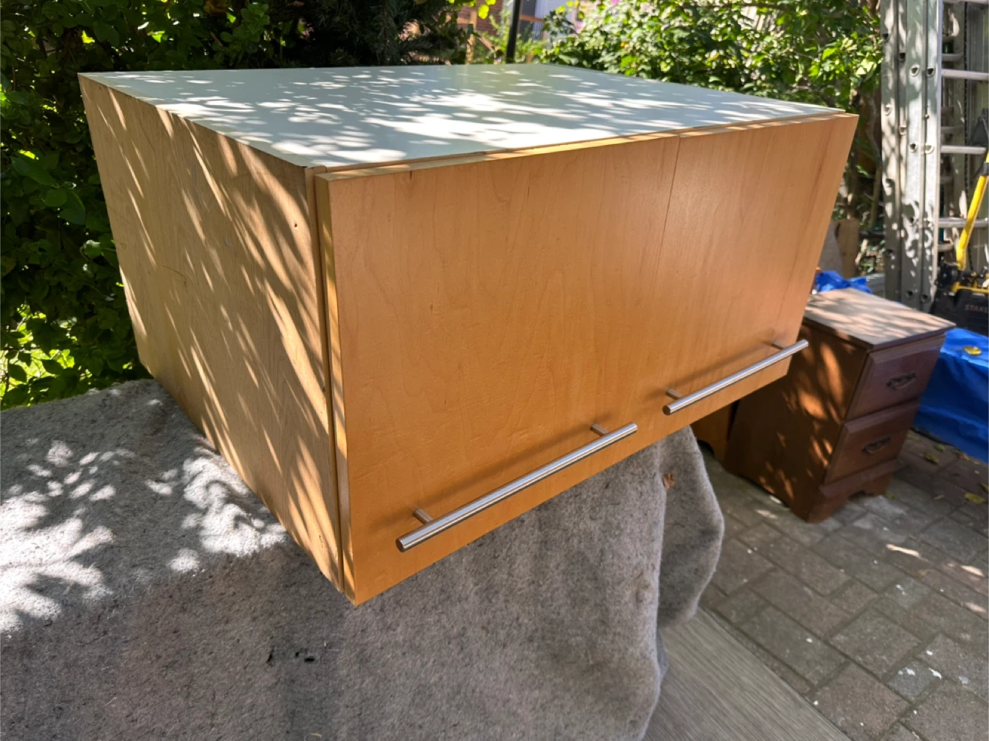 Selling a wooden over a range/ fridge cabinet.