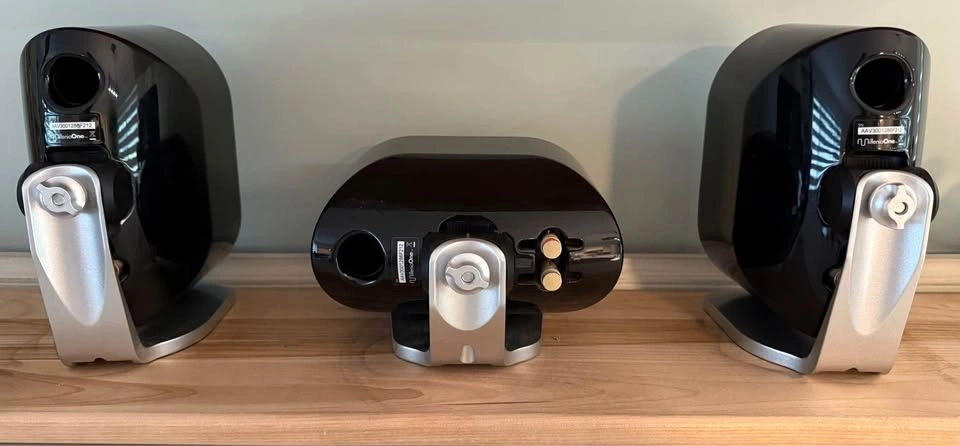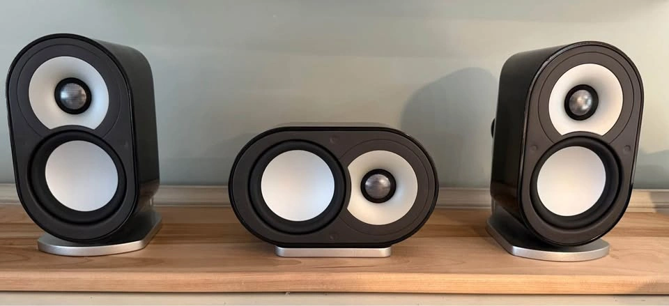 60Left, center, right speakers. Good shape with only minor wear marks. Sound amazingly clear for small speakers. Perfect for apartment or condo.