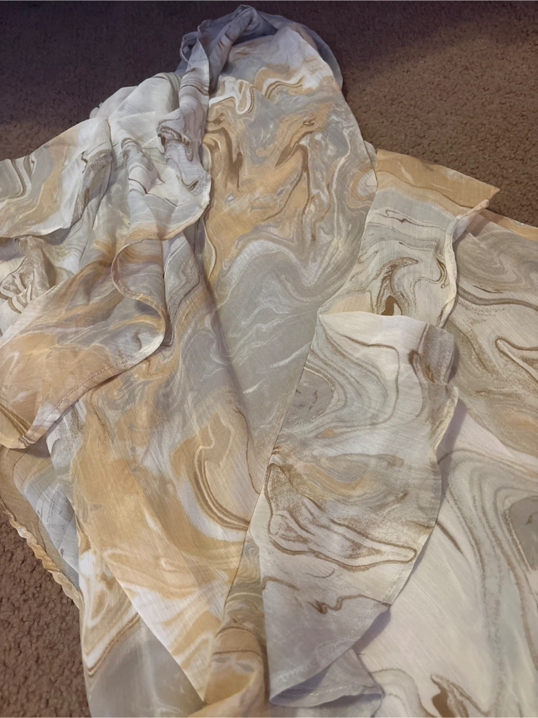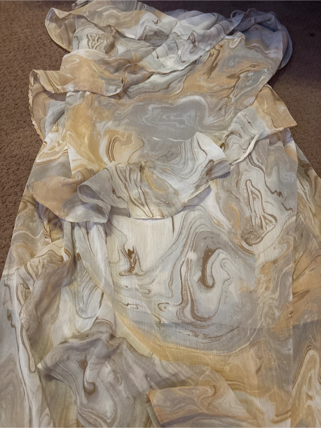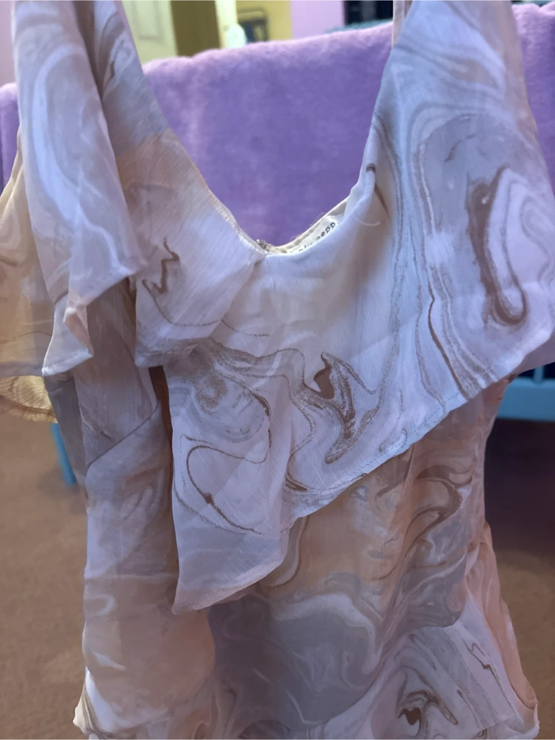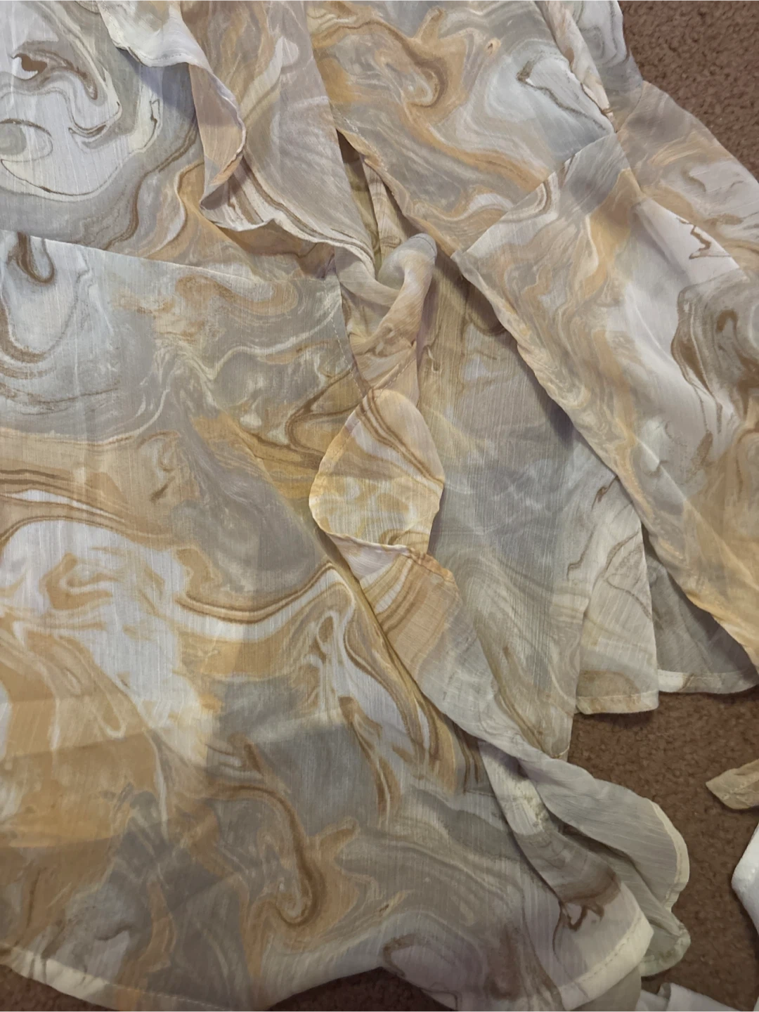 Selling this lovely ruffle dress with a unique marble print. The material is lightweight and flowy, perfect for summer days. It's in great condition and ready for a new home!