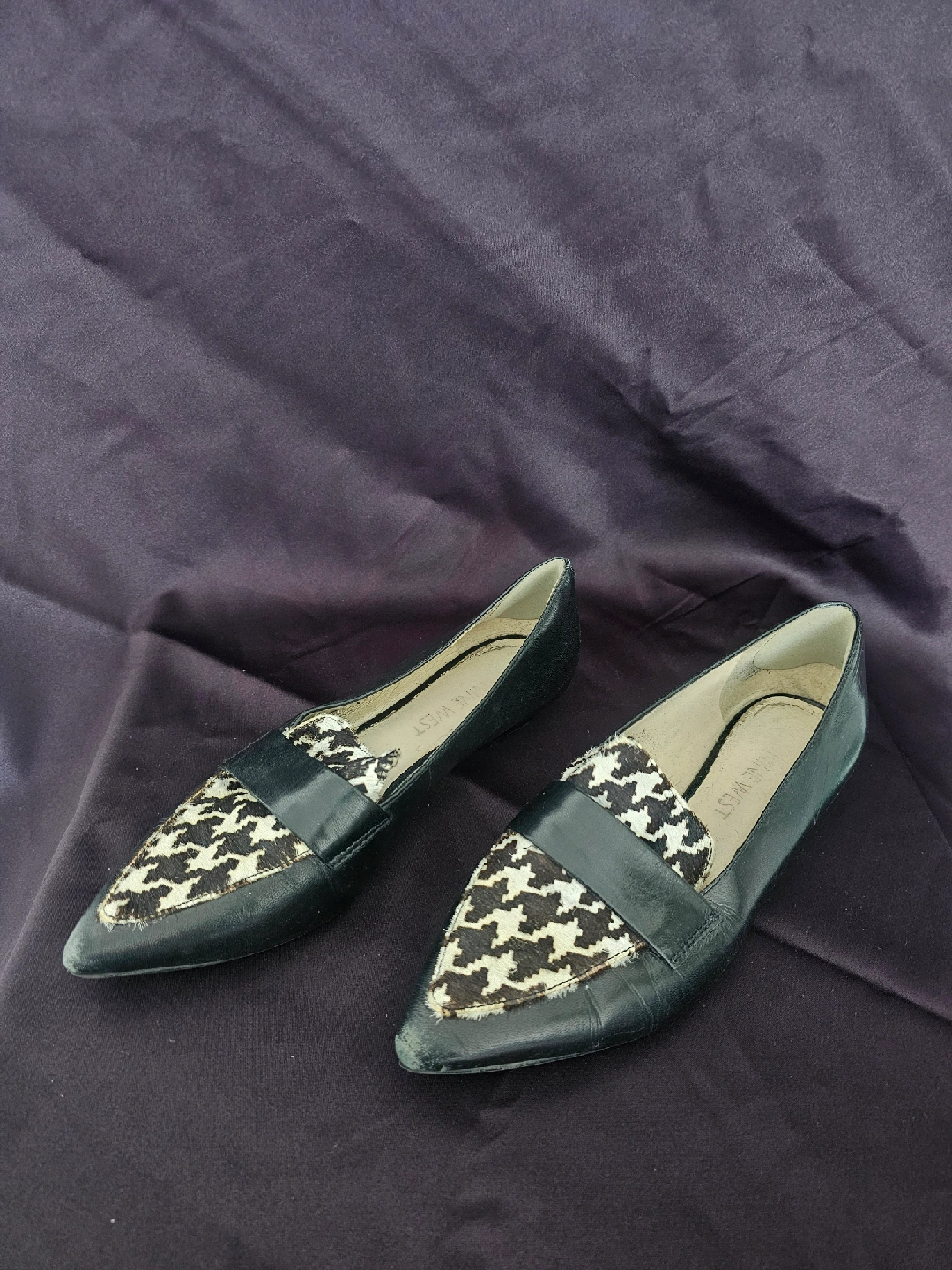 USED - Nine West Black Leather Houndstooth Loafers, Size 5.5