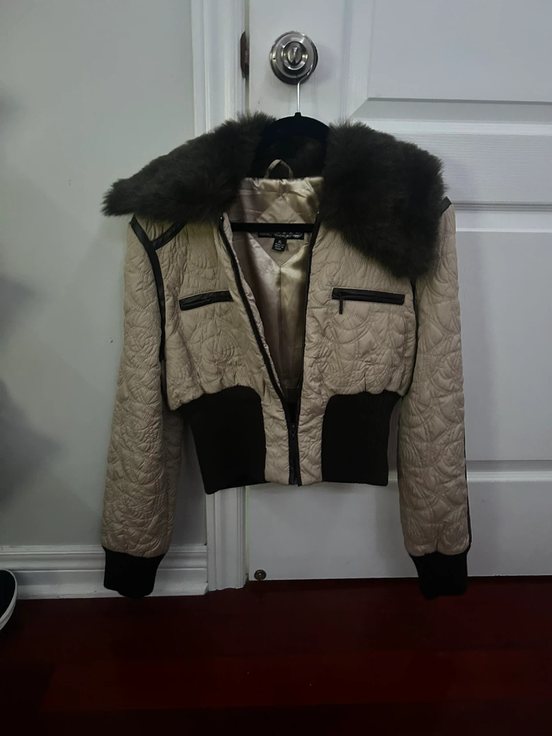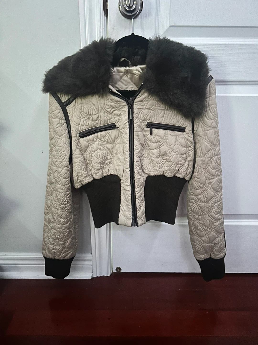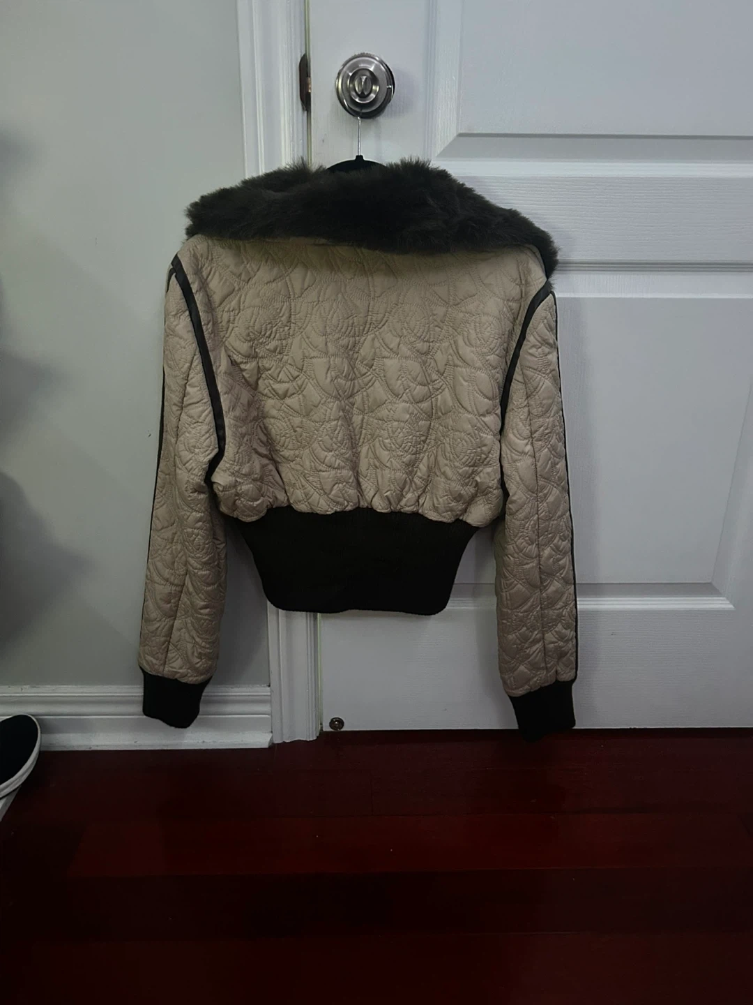Selling a stylish Static quilted bomber jacket in size XL! It features a unique quilted pattern and a faux fur collar, perfect for adding a touch of flair to your wardrobe. The jacket is in great condition and ready for a new home