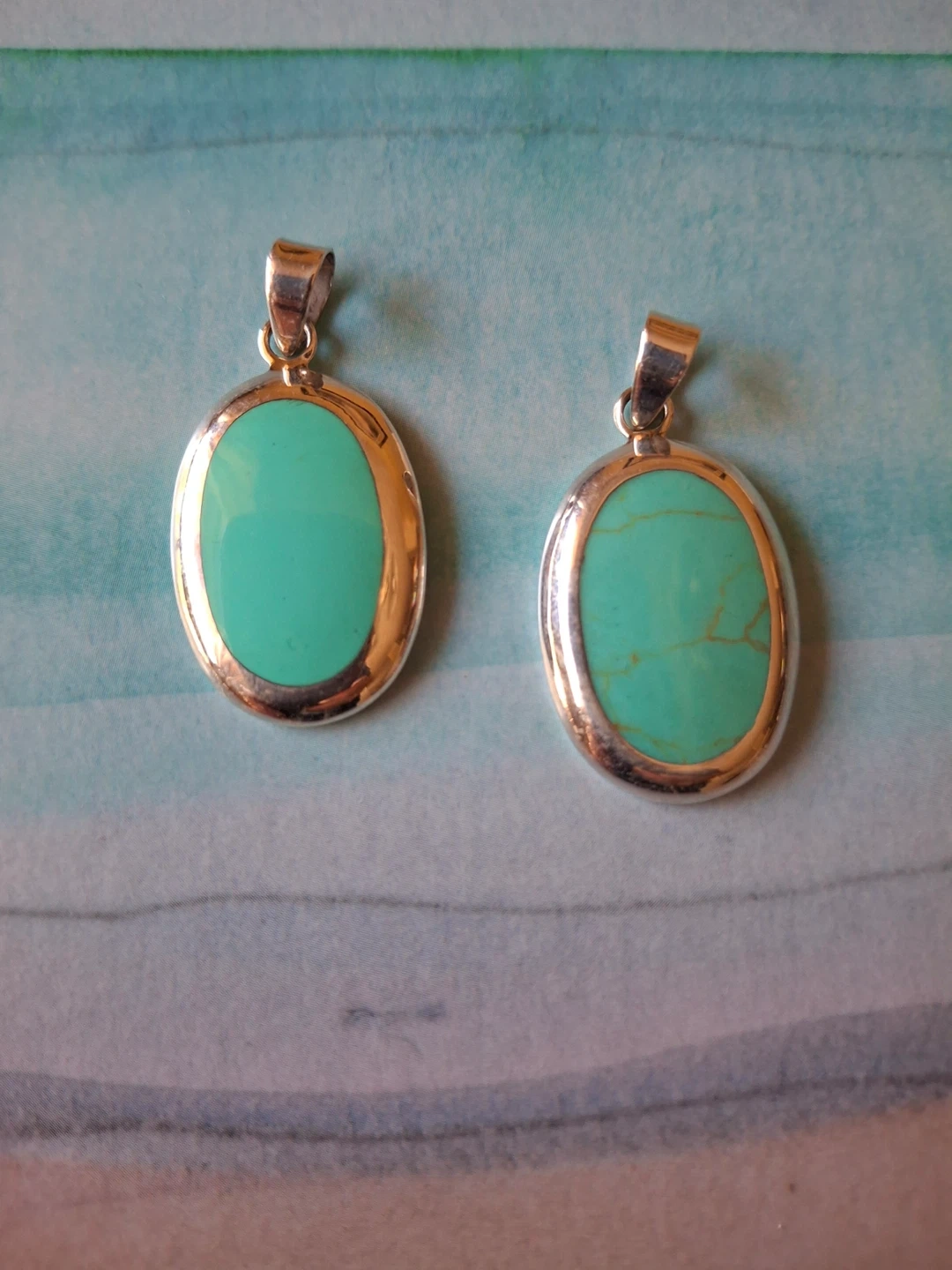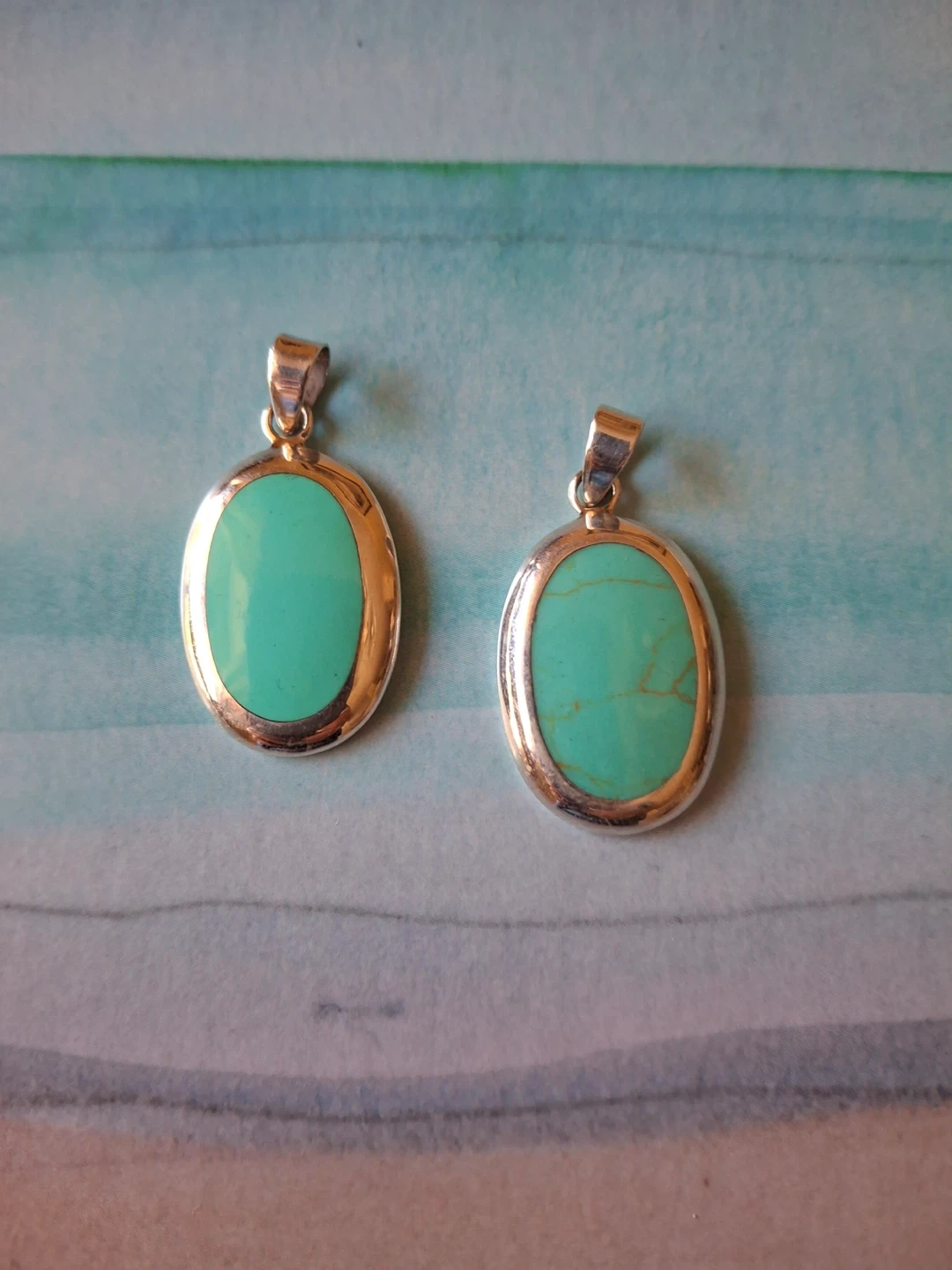 New turquoise pendants, 2 available. Silver stamped 925. One has very fine red vein line detail.