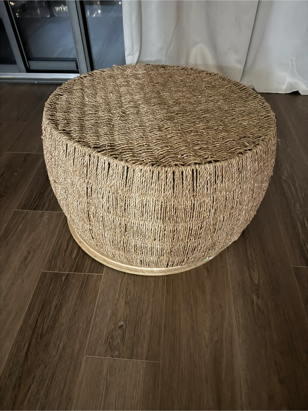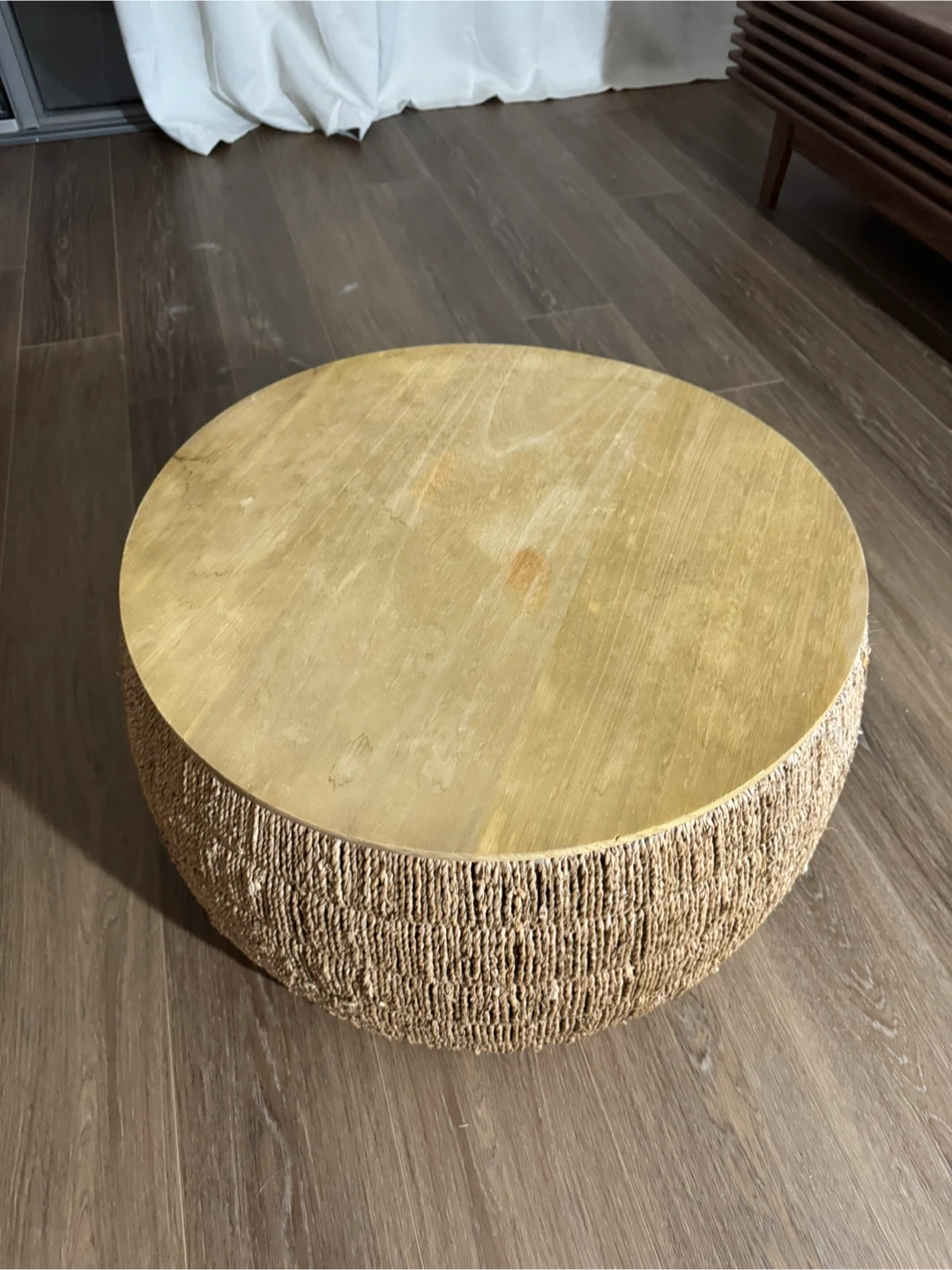 Selling a round woven coffee table! It's in great shape and would be a lovely addition to any living space. Perfect for adding a touch of natural texture to your home decor