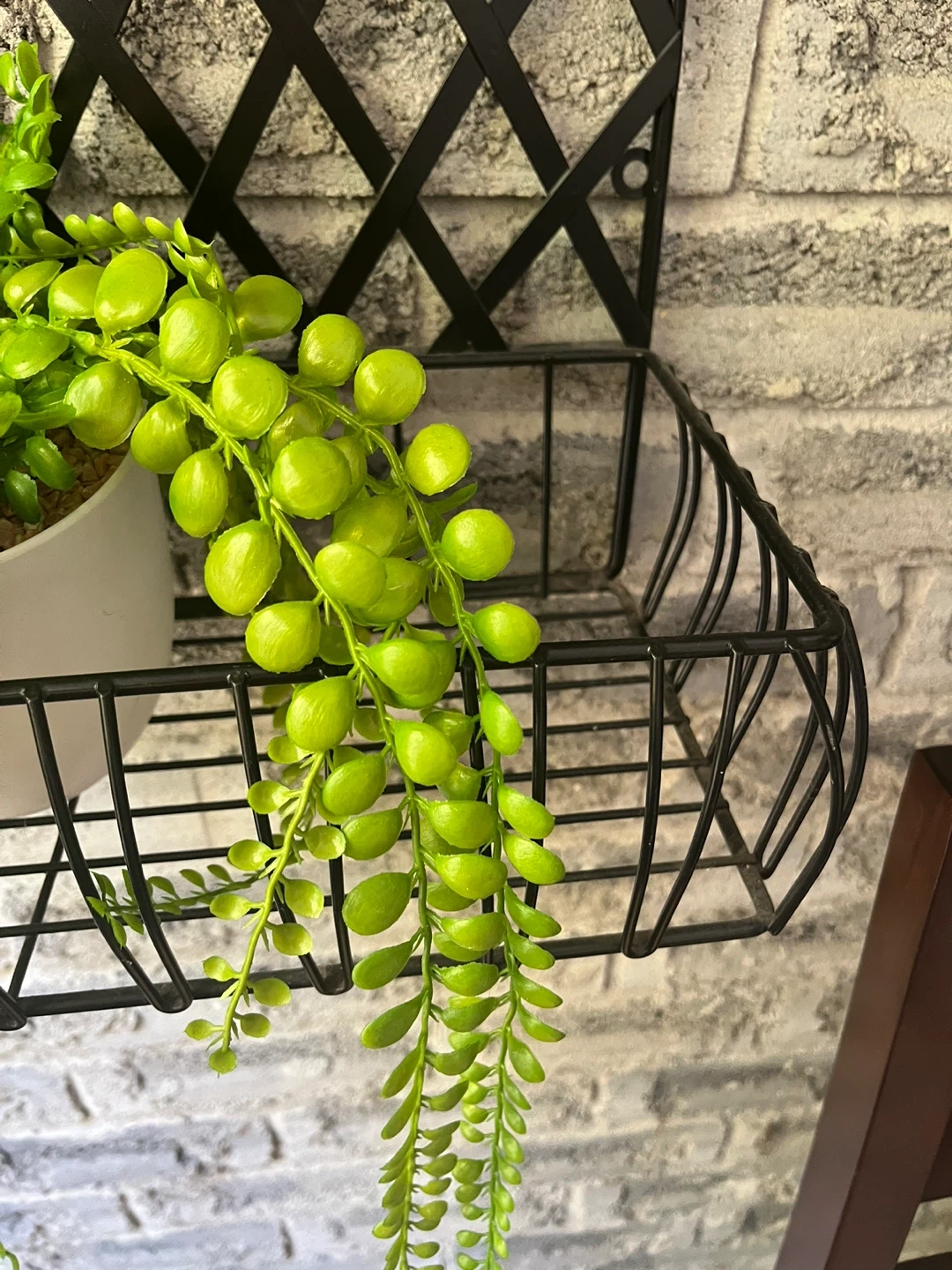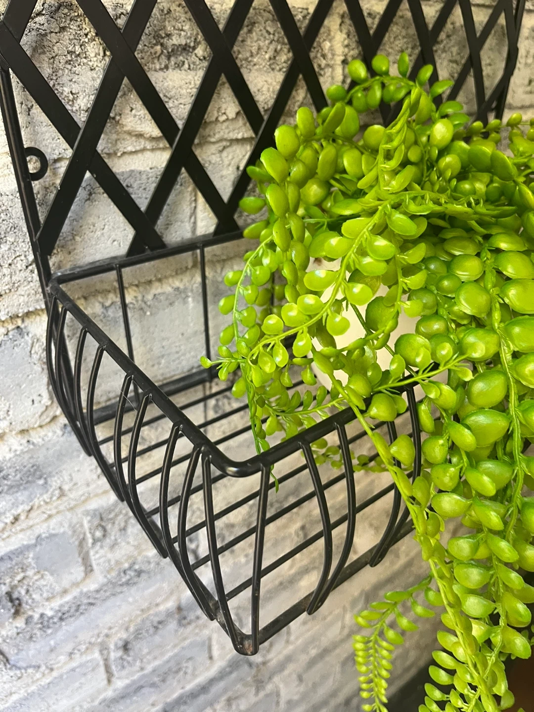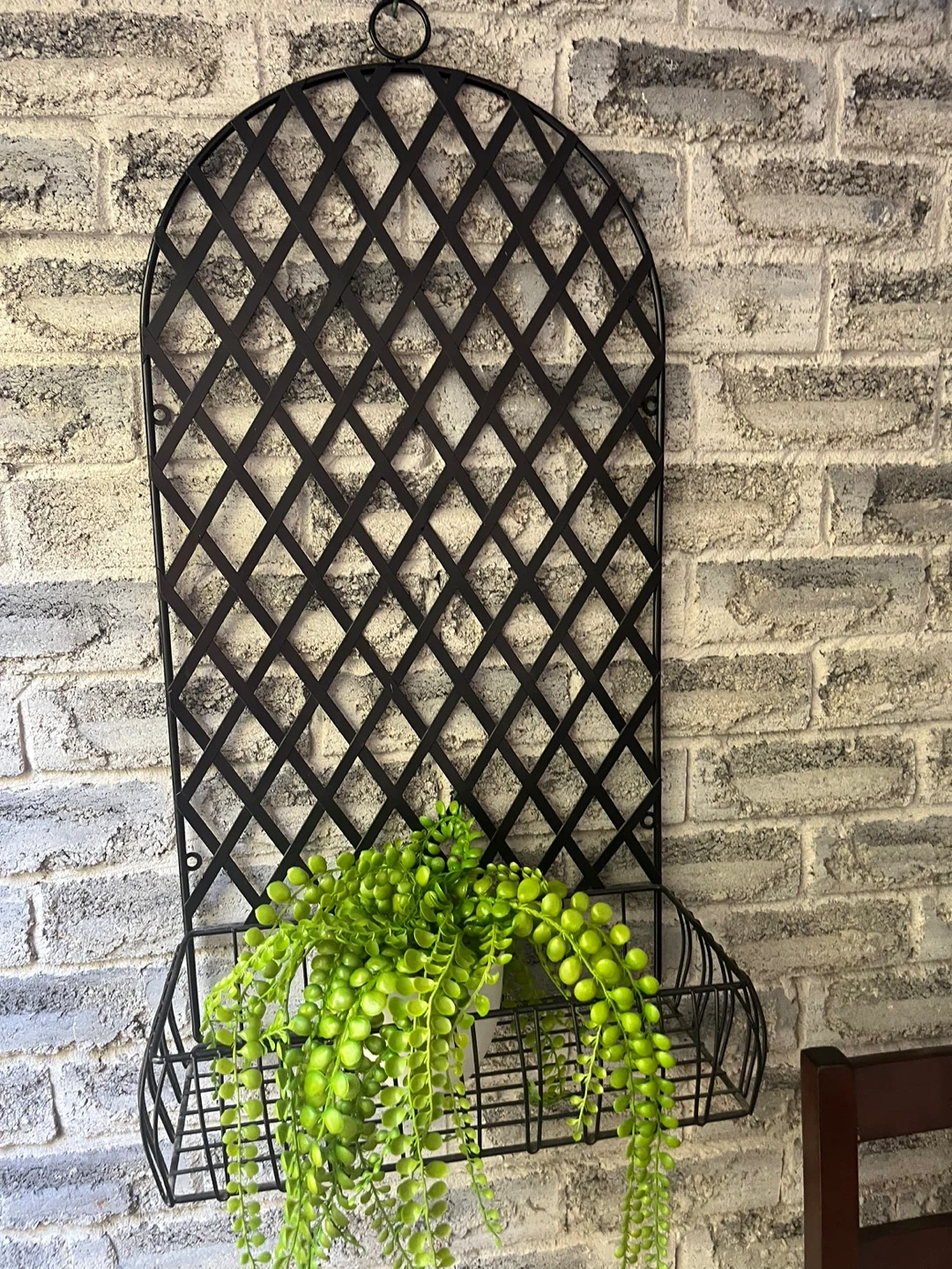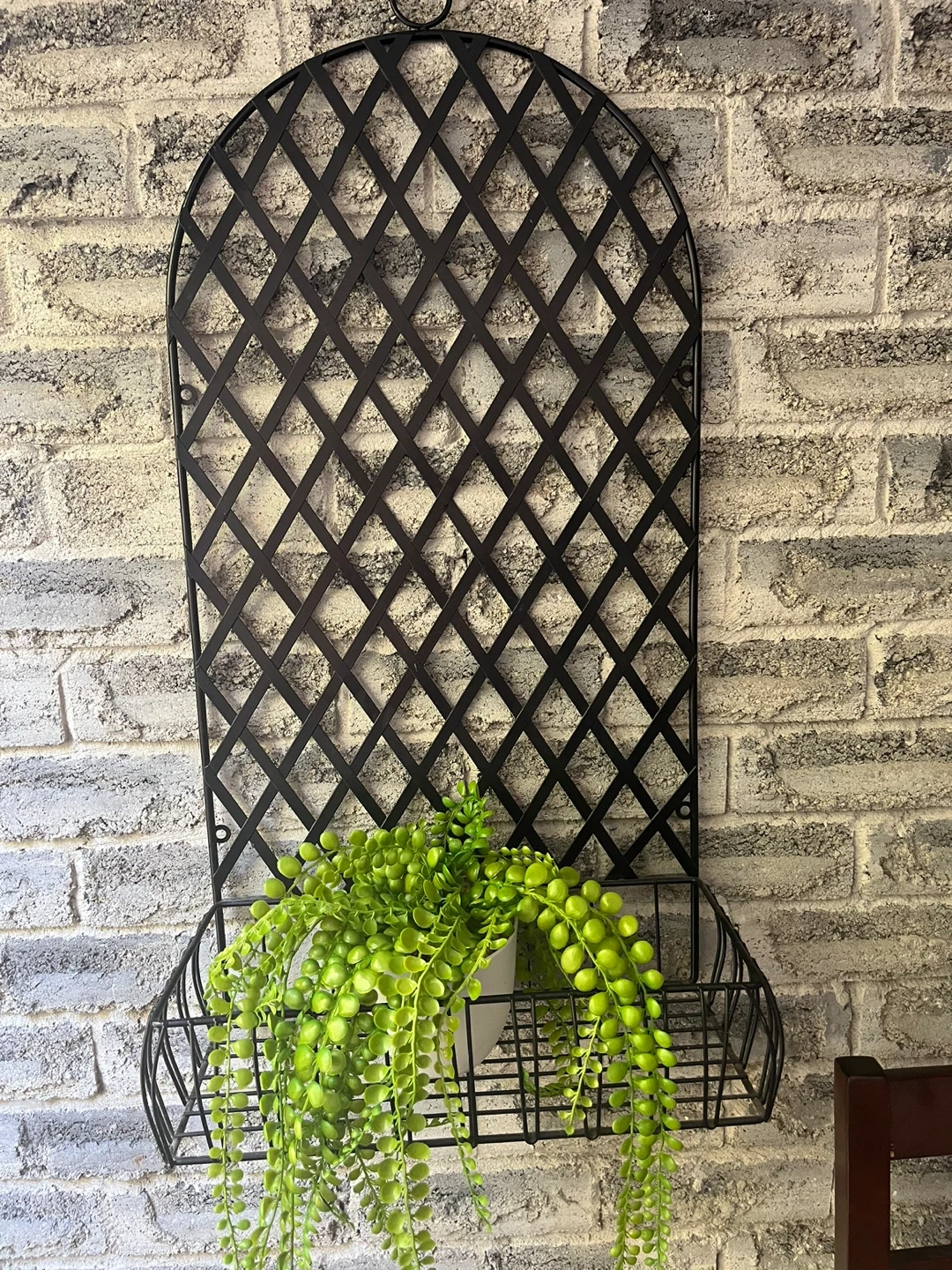 Moving Sale !!! 32” x 16” x 8”. Excellent condition.?Black Metal wall hanging plant holding decor. Add a touch of greenery to your space with this lovely metal wall trellis! It features a basket at the bottom, perfect for holding a small plant or other decorative items. The black metal finish gives it a modern and stylish look that will complement any decor
