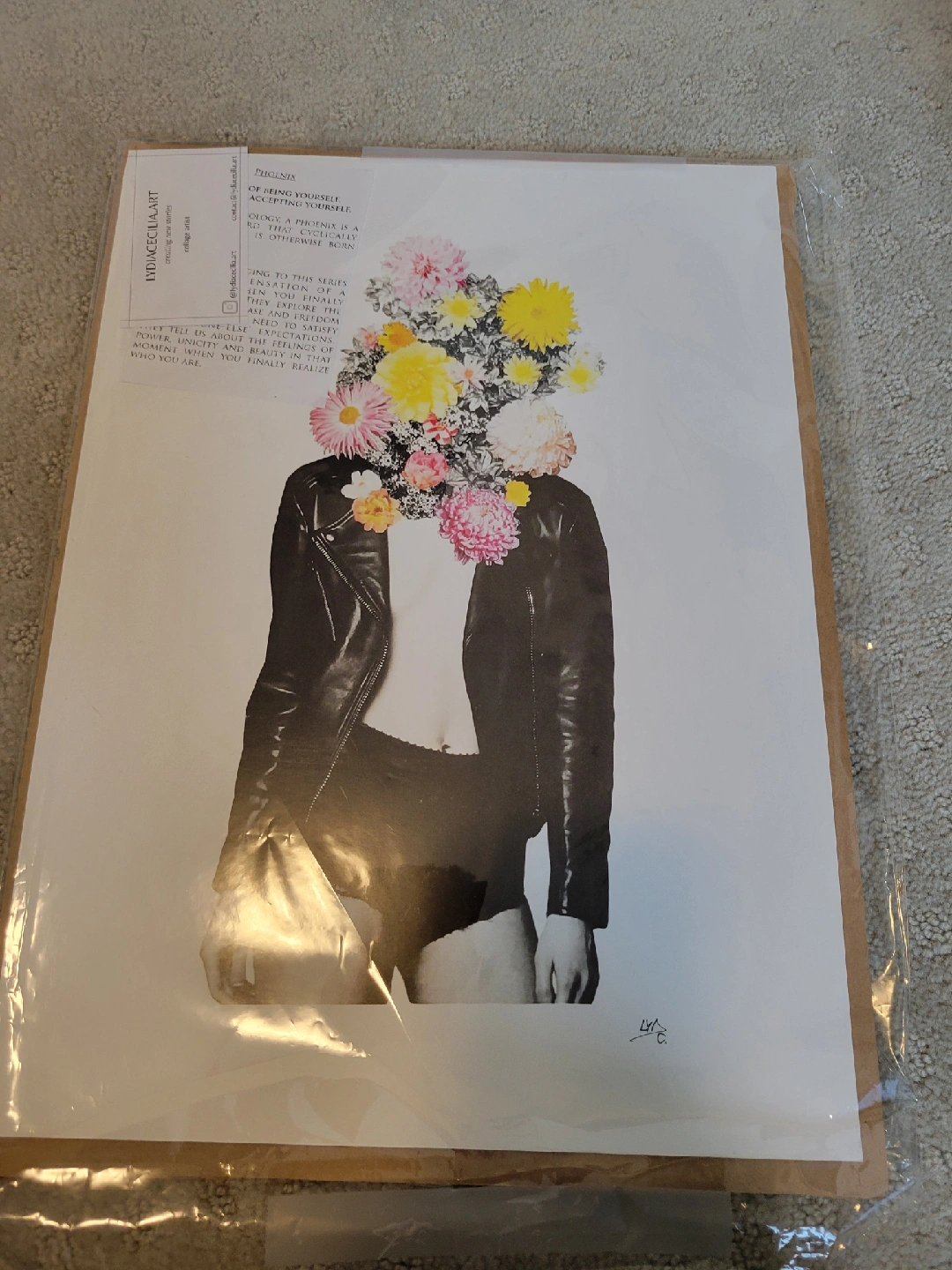 This is a vintage-style art print featuring a girl with flowers. It's a unique and eye-catching piece that would look great in any room. It's in excellent condition and ready to find a new home!